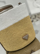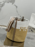 BUCKET BAG 25 IN WHITE MIX BEIGE RAFFIA AND BROWN CALFSKIN HANDLE