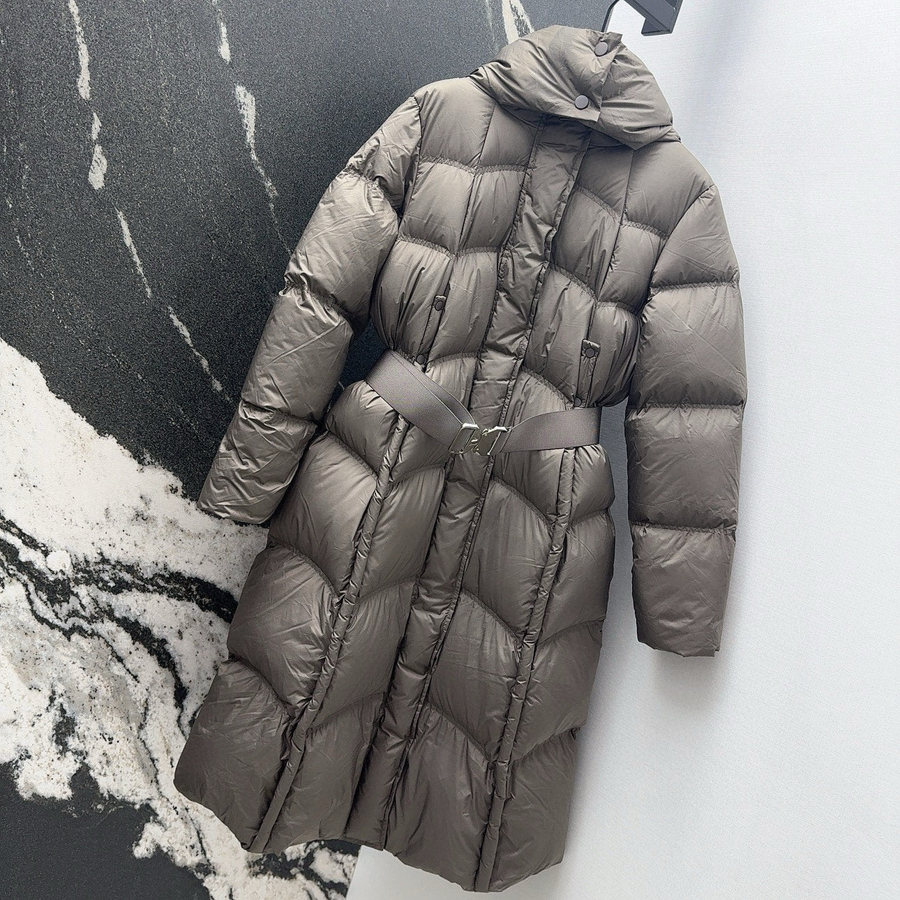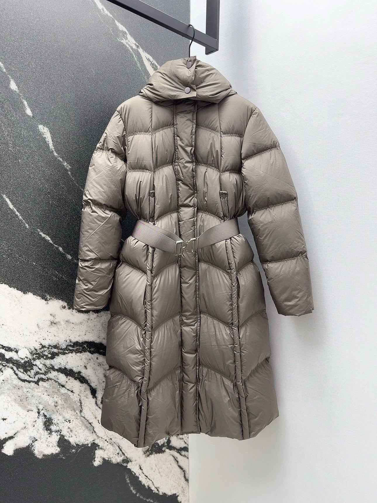 Burberry 25 Hooded Short Down Jacket with Adjustable Waist Taupe Polyester