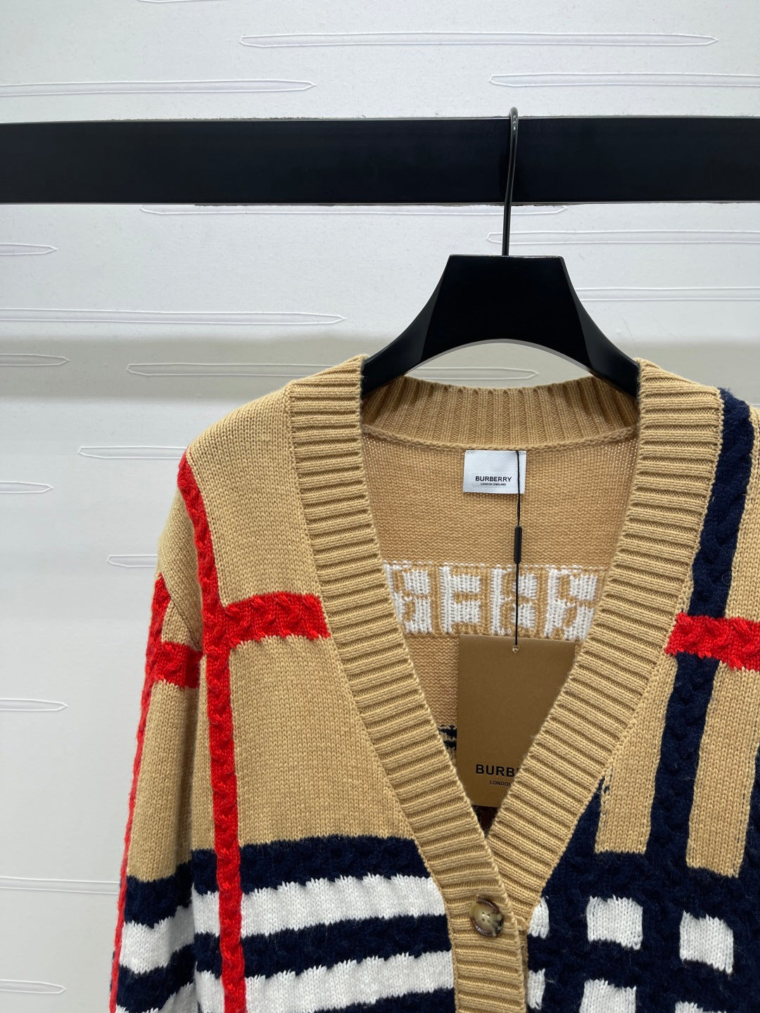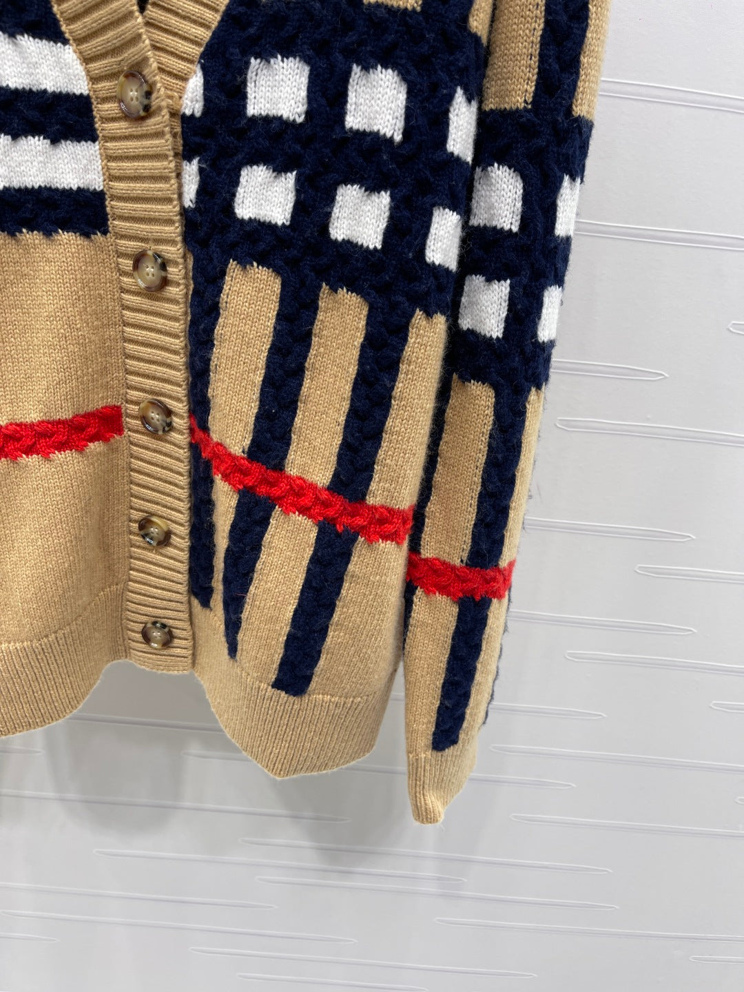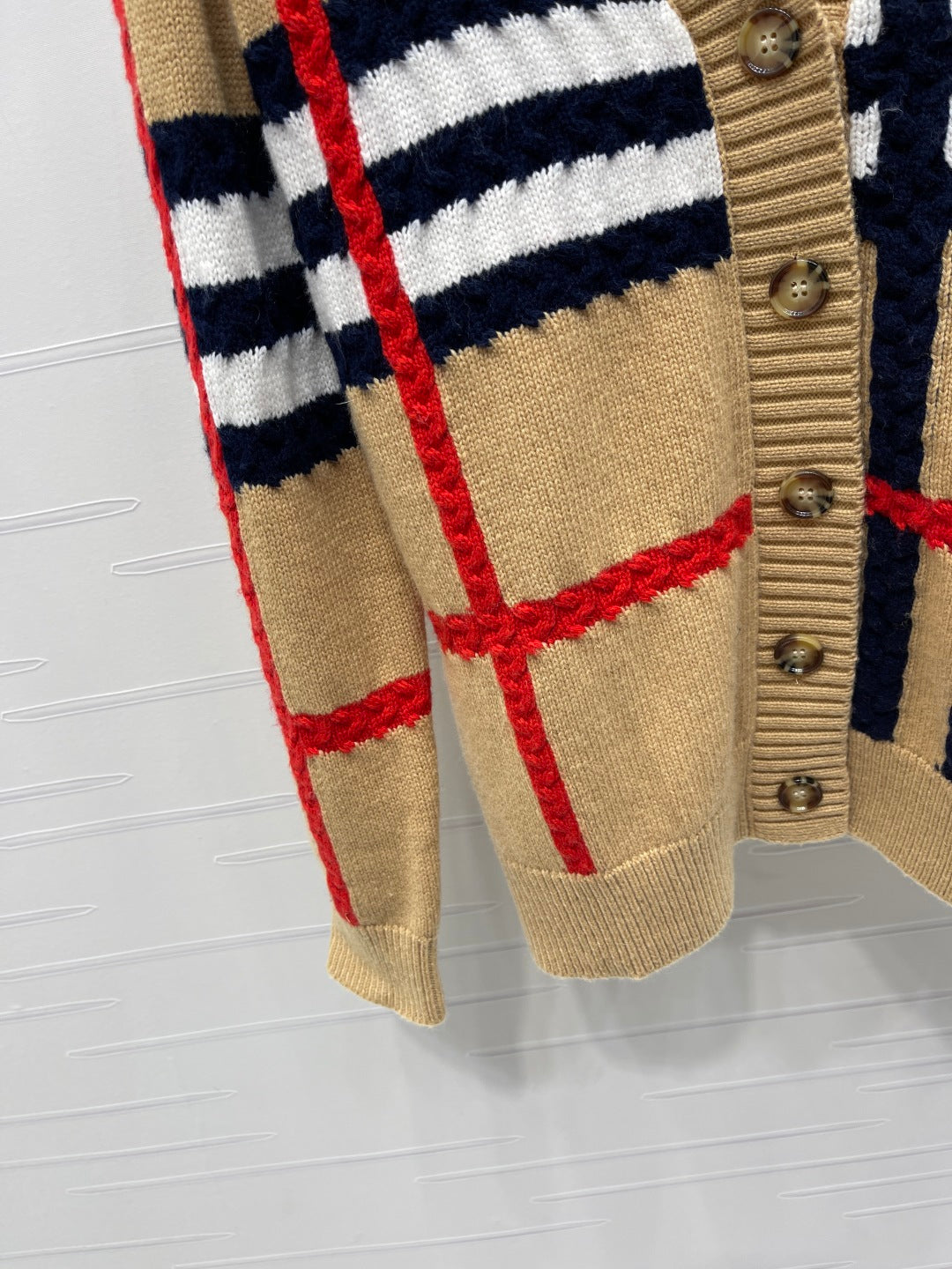 Burberry 25 V-neck Long-sleeved Cardigan Beige Wool Cashmere