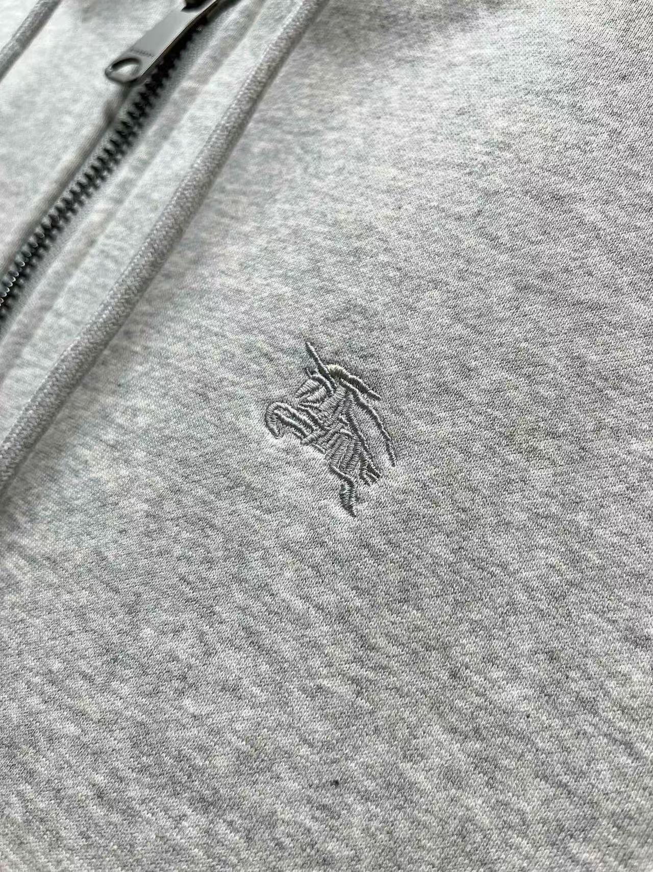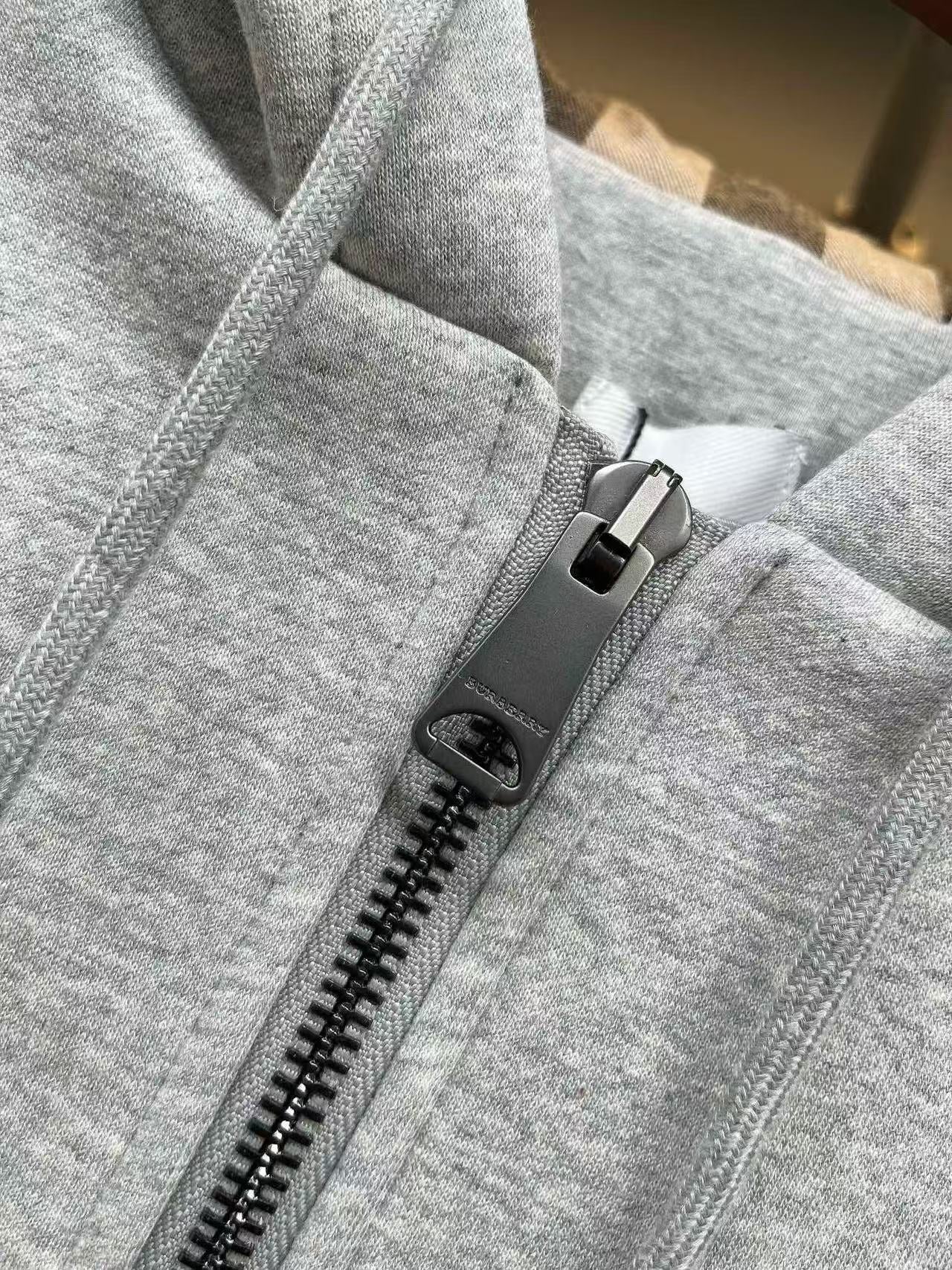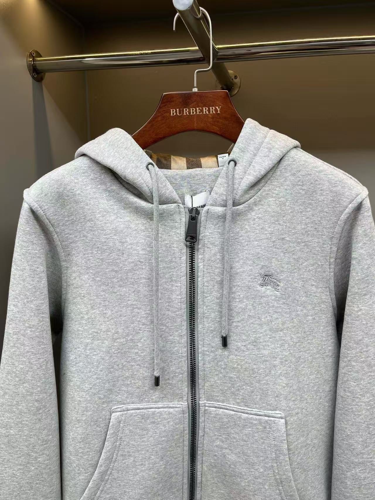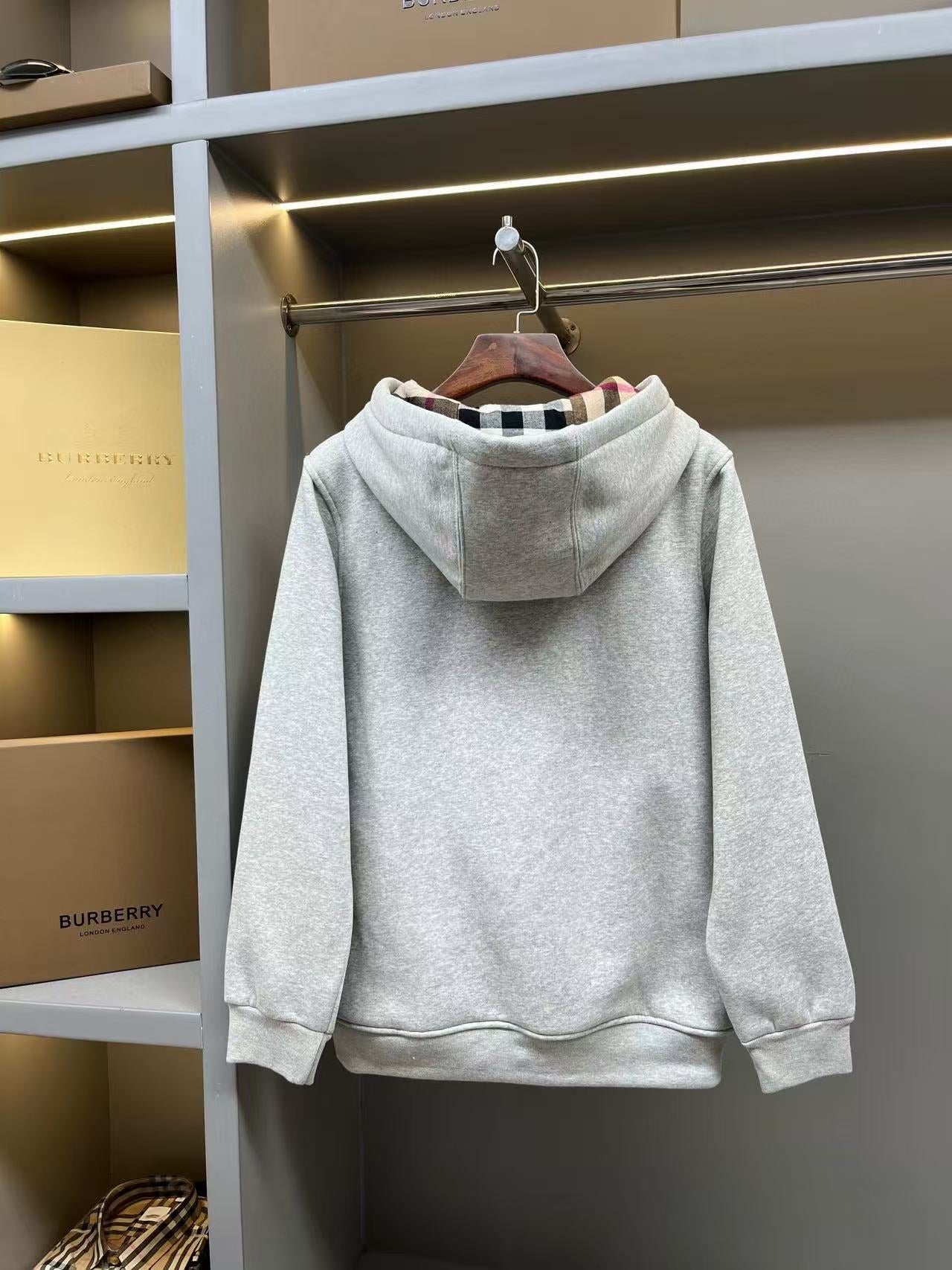 Burberry Checked Thick Hoodie Gray Cotton