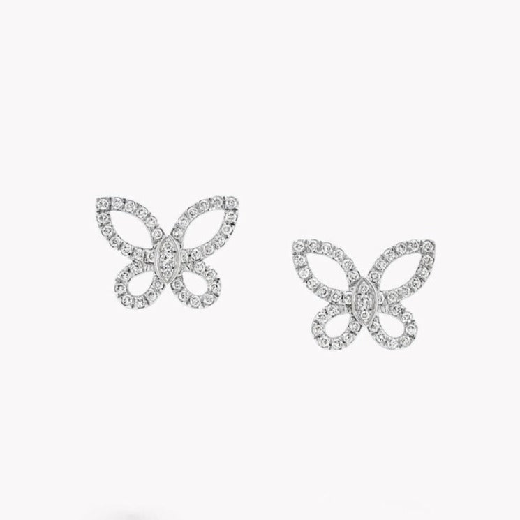 BUTTERFLY SILHOUETTE MINI SILVER DIAMOND EARRINGS