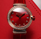 BVL LVCEA 33 PINK GOLD RED DIAL LEATHER STRAP
