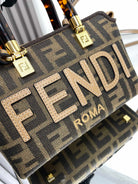 BY THE WAY MINI 18 IN SOYA BEAN JACQUARD FABRIC AND BROWN CALFSKIN TRIM