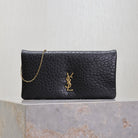 CALYPSO POUCH 24 IN BLACK ELEPHANT TEXTURED LAMBSKIN GOLD LOGO