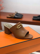 CAMILLA MULE 65 CARAMEL CALFSKIN