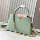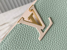 capucines bb 27 green beige taurillon leather gold hardware