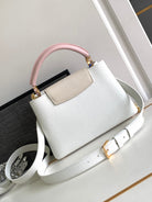 CAPUCINES BB 27 IN WHITE MIX PINK AND BEIGE TAURILLON GOLD HARDWARE