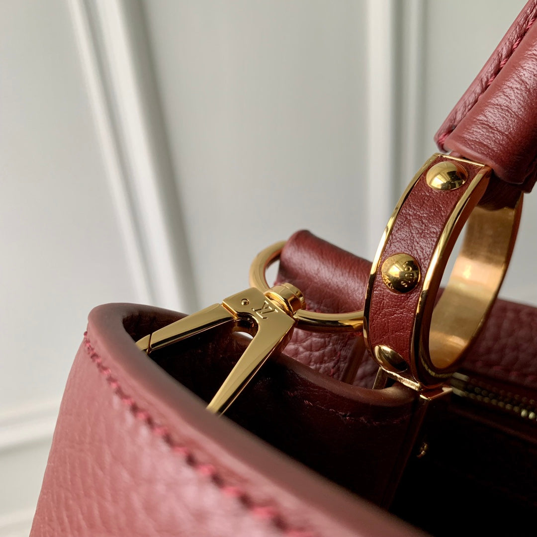 capucines mm 31.5 burgundy taurillon leather gold hardware
