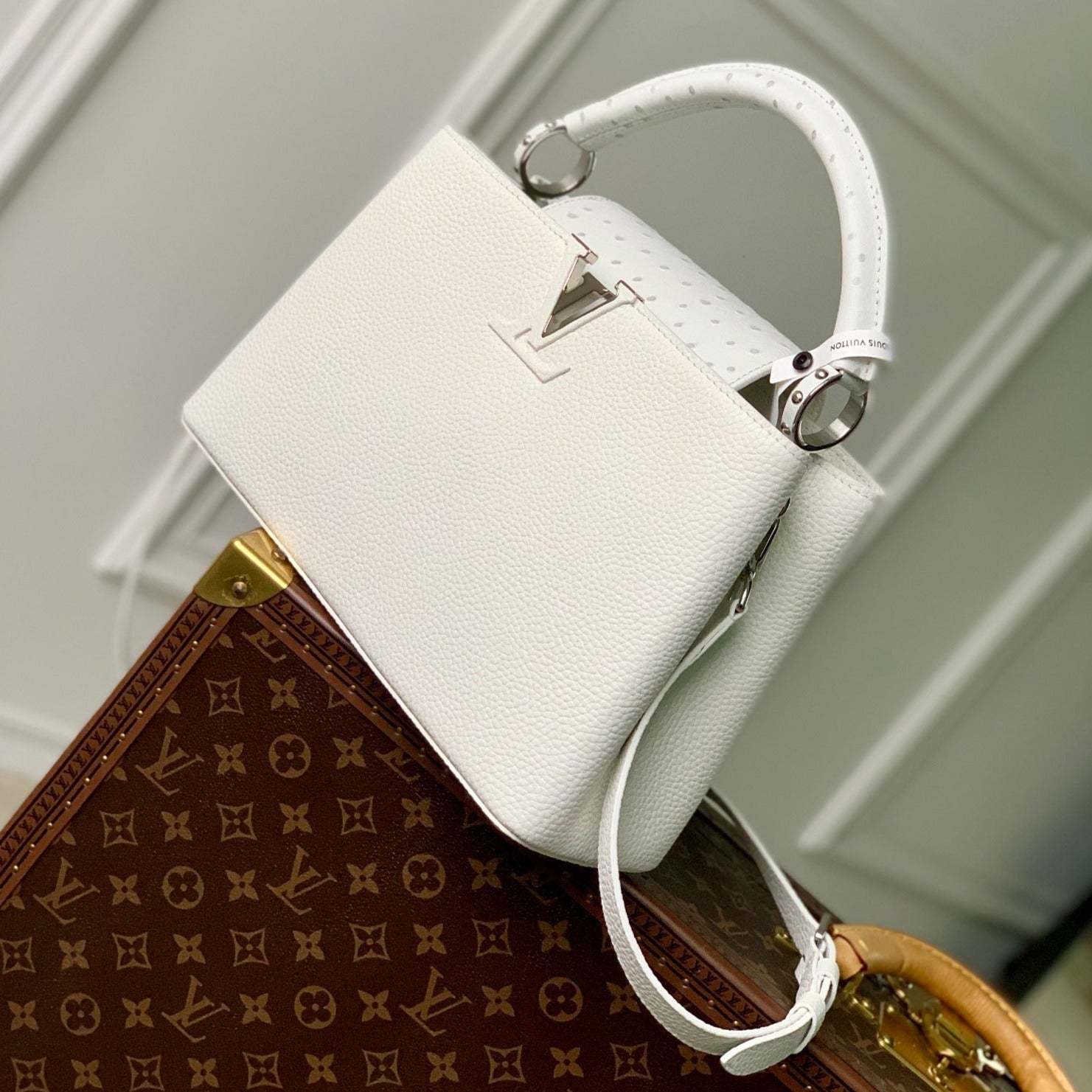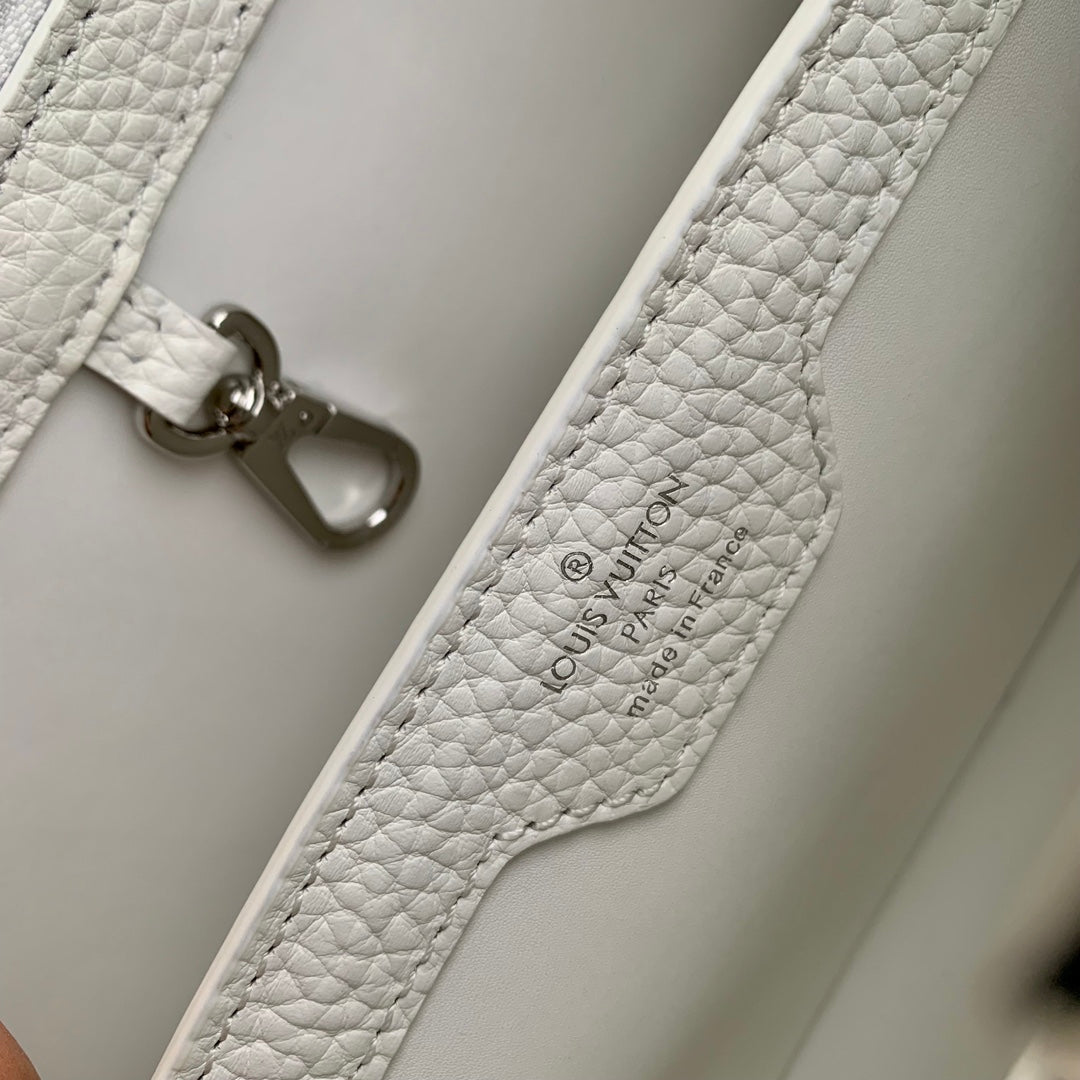 capucines mm 31.5 white taurillon leather silver hardware