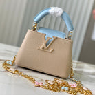 capucines nano 16 beige cloud blue taurrilon leather gold hardware