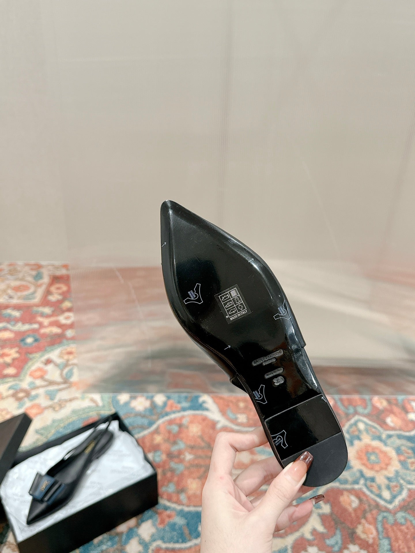 CASSANDRA SLINGBACK FLAT IN BLACK MIX BLUE SMOOTH LAMBSKIN