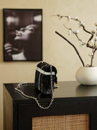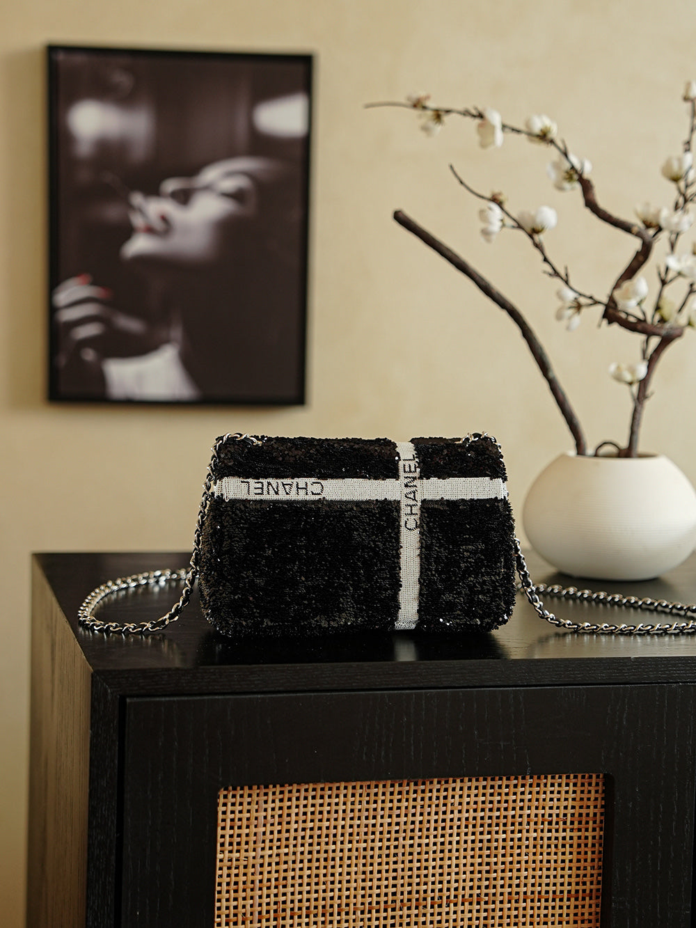 CC 2025 Bow Flap Bag Black White Sequin 308597
