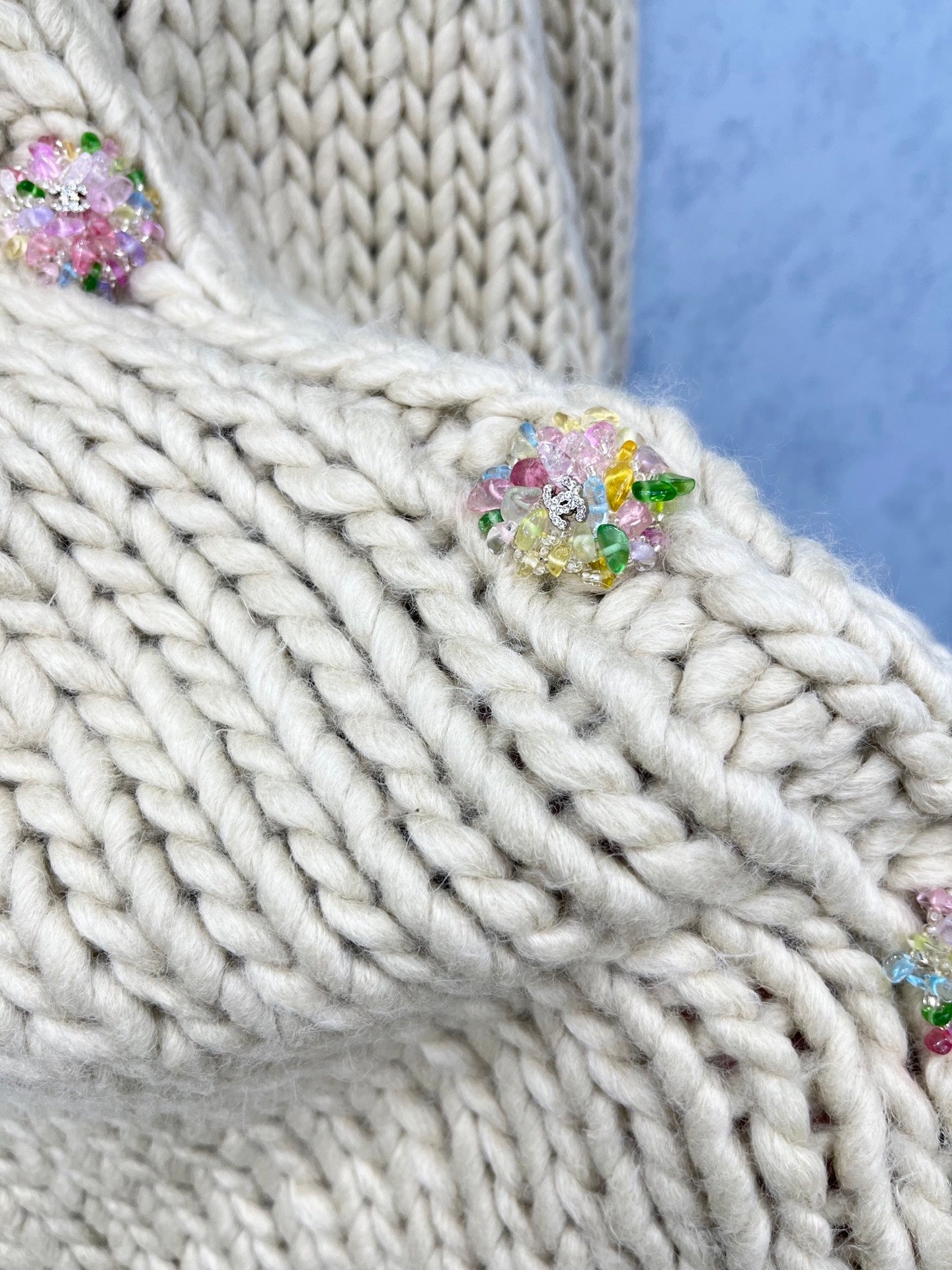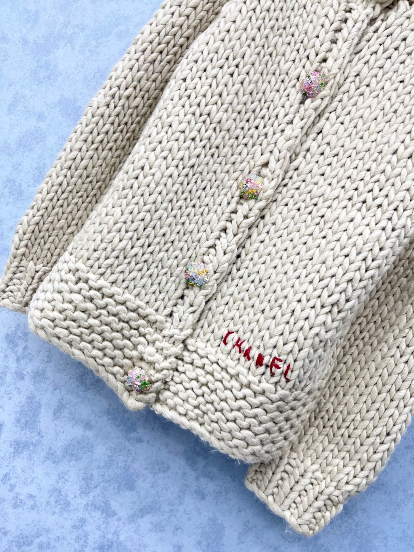 CC 2025 Cardigan With Multicolored Button Beige Wool 325881