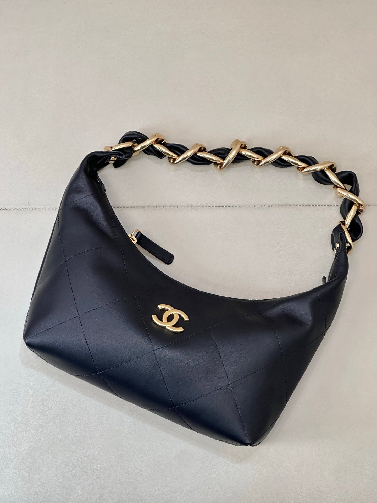 CC 2025 Hobo Bag Black Lambskin Gold Hardware 296891