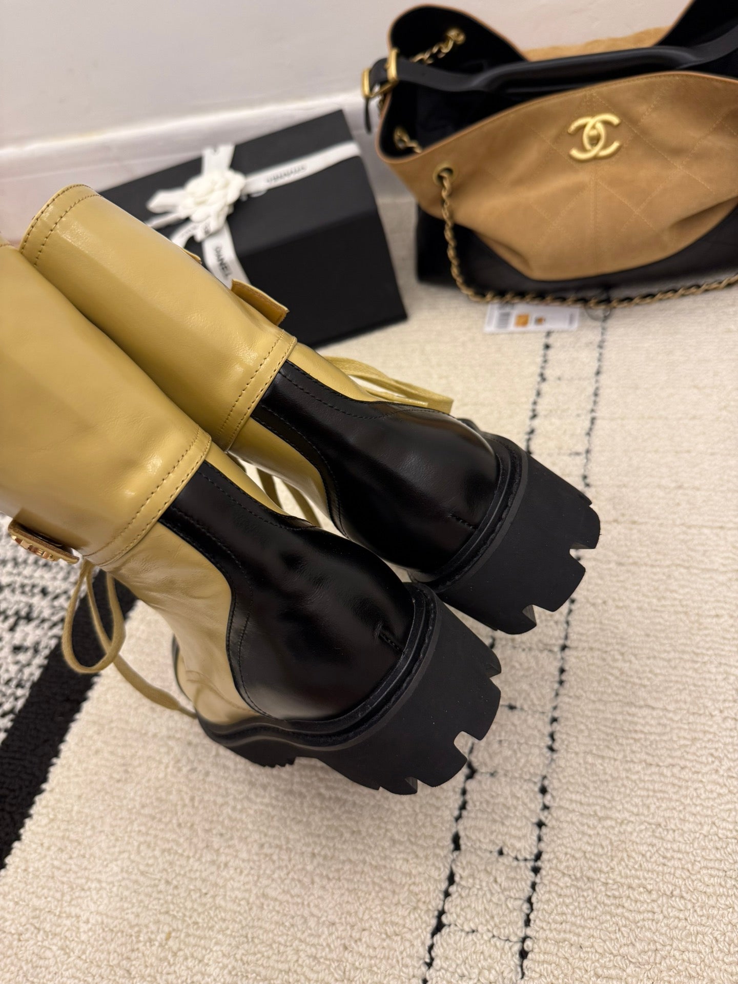 CC 2025 Lace-up Combat Boot Beige Black Leather 548116