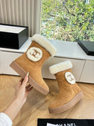 CC 2025 Short Snow Boot Brown White Suede Wool 548927