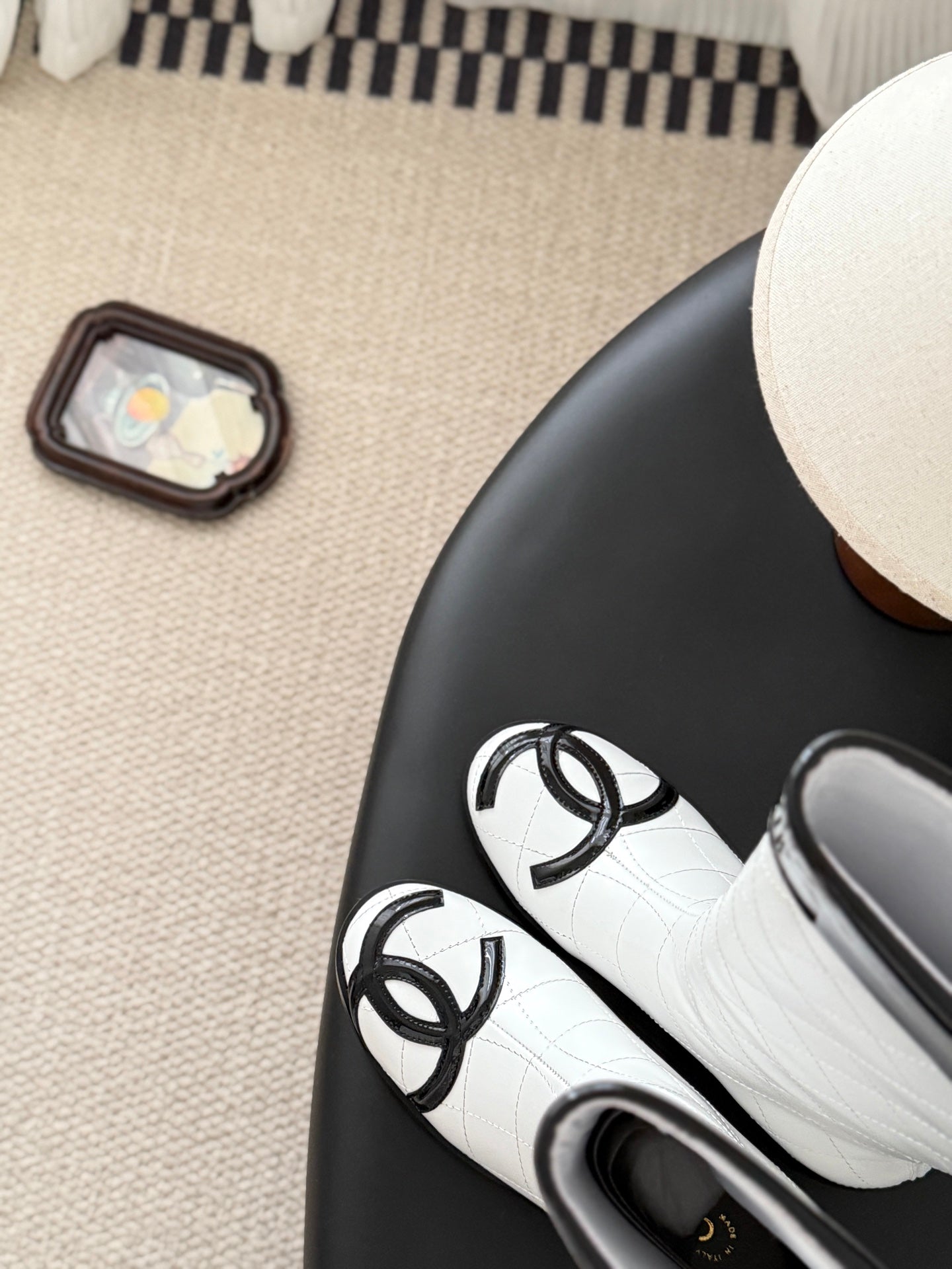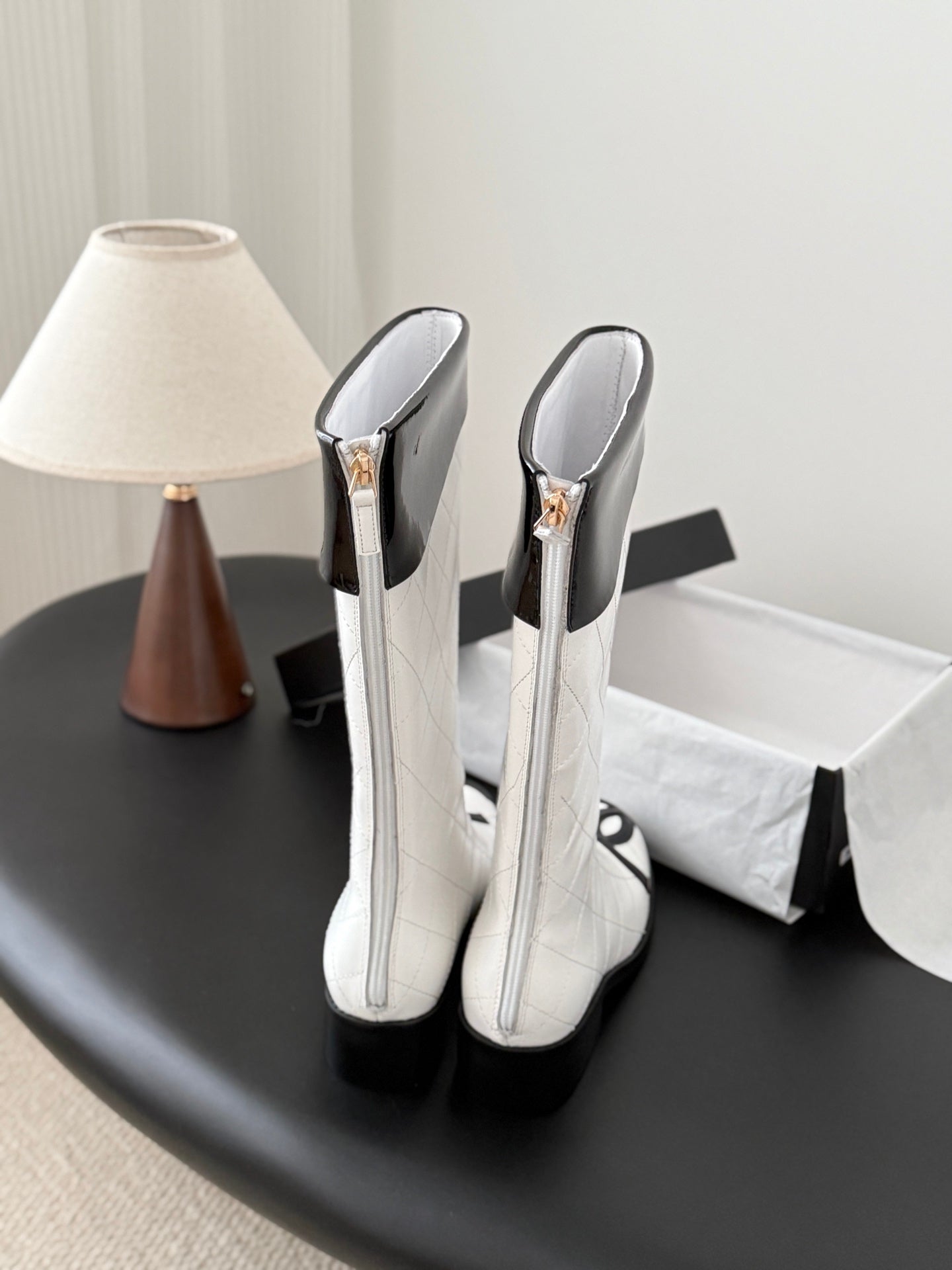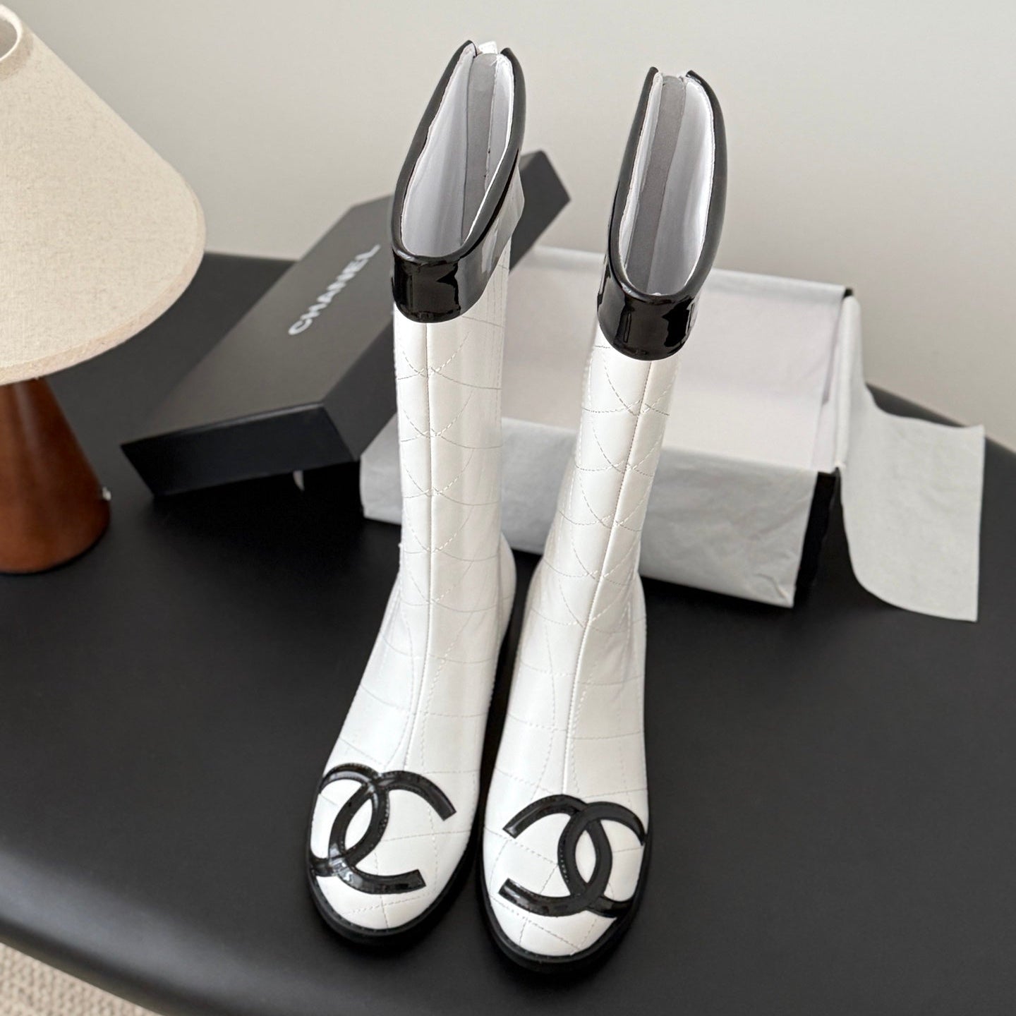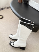 CC 2025 Vintage Cambon Mid-Calf Boots White Black Cowhide 550638