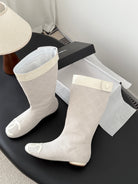 CC 2025 Vintage Cambon Mid-Calf Boots White Suede Patent Leather 550639