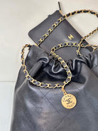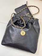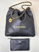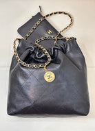 CC 22 Hobo Bag 35cm Black Grained Calfskin Gold Hardware