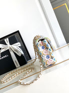 CC 24a Flap Bag 20cm Multicolor Sequin Satin Gold Hardware