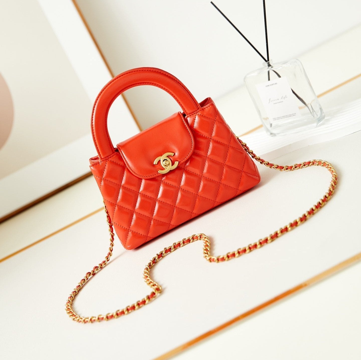 cc 24a nano 19cm kelly shopper bag hot orange lambskin