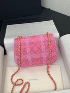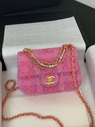 CC 24P Mini Flap Bag 17cm Pink Tweed Pearl Chain Gold Hardware