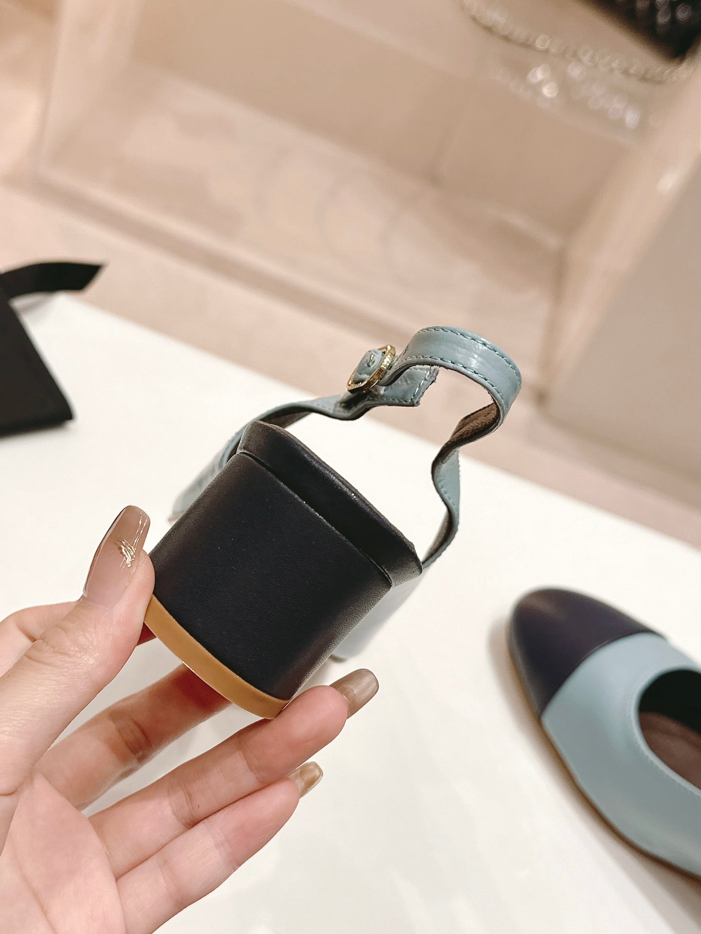 CC 24P SLINGBACKS 45MM TURQUOISE BLACK LAMBSKIN