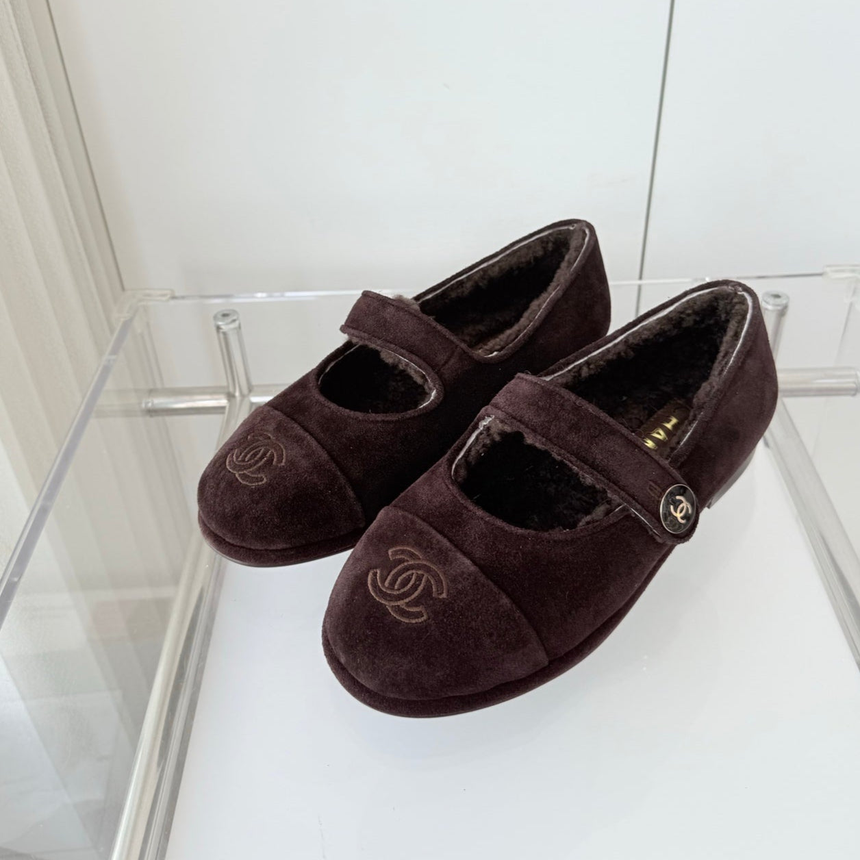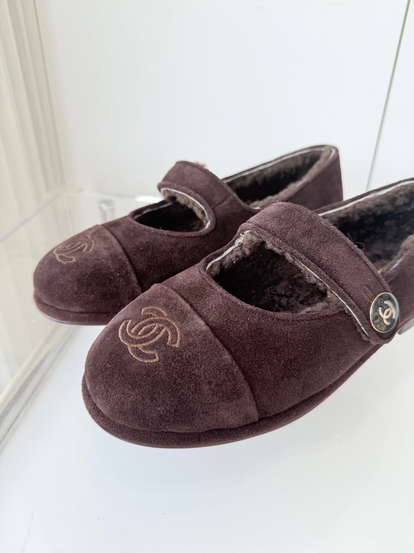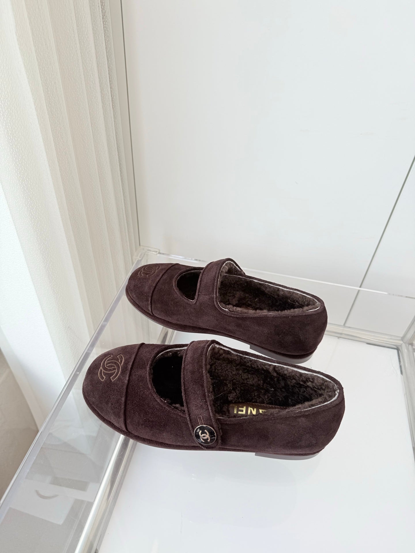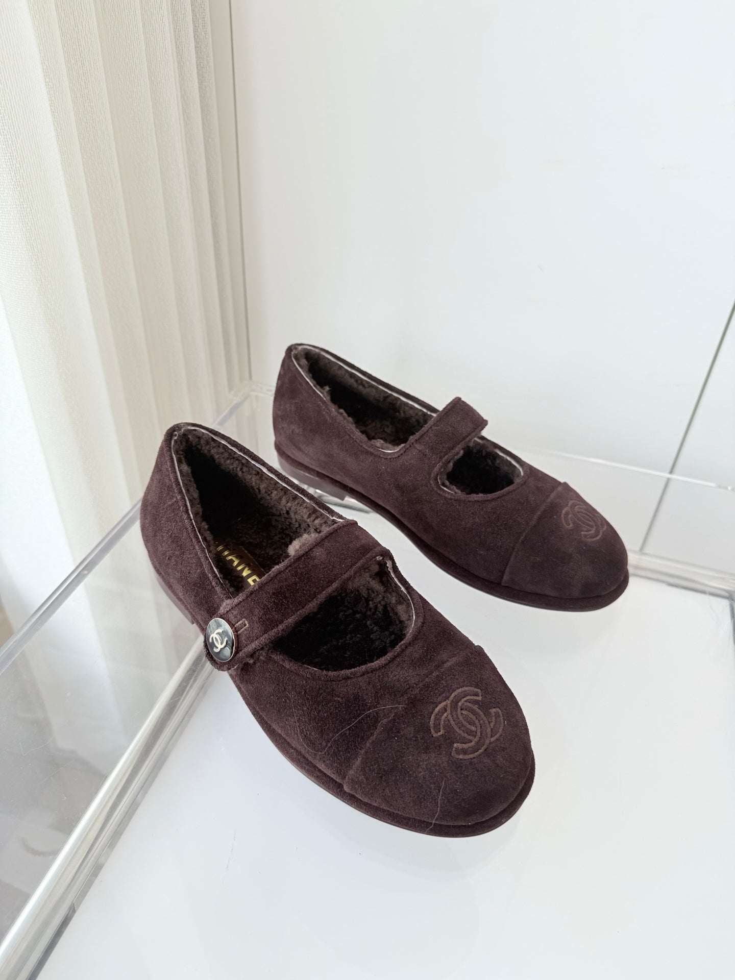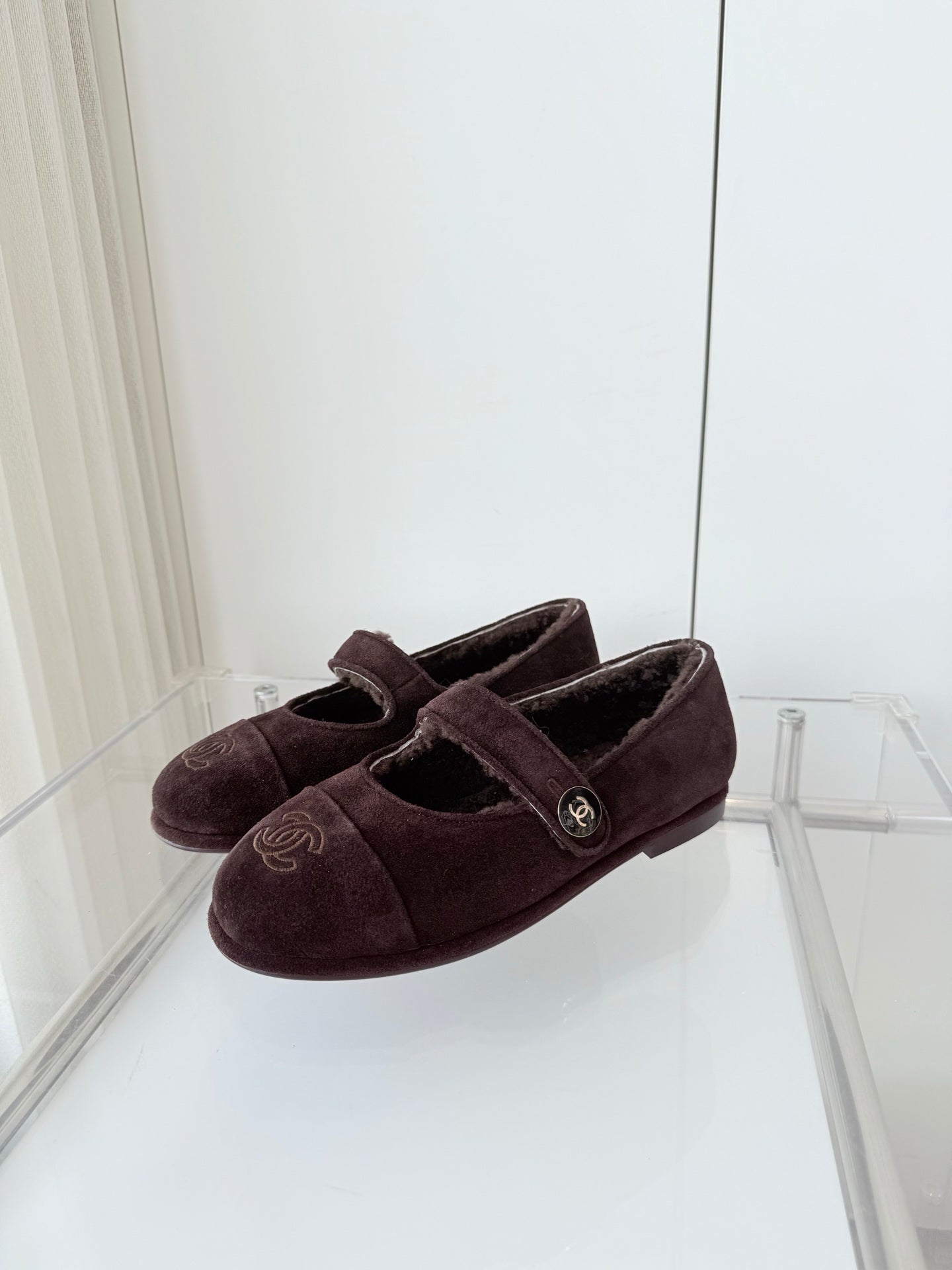 - Material: Suede, wool lining