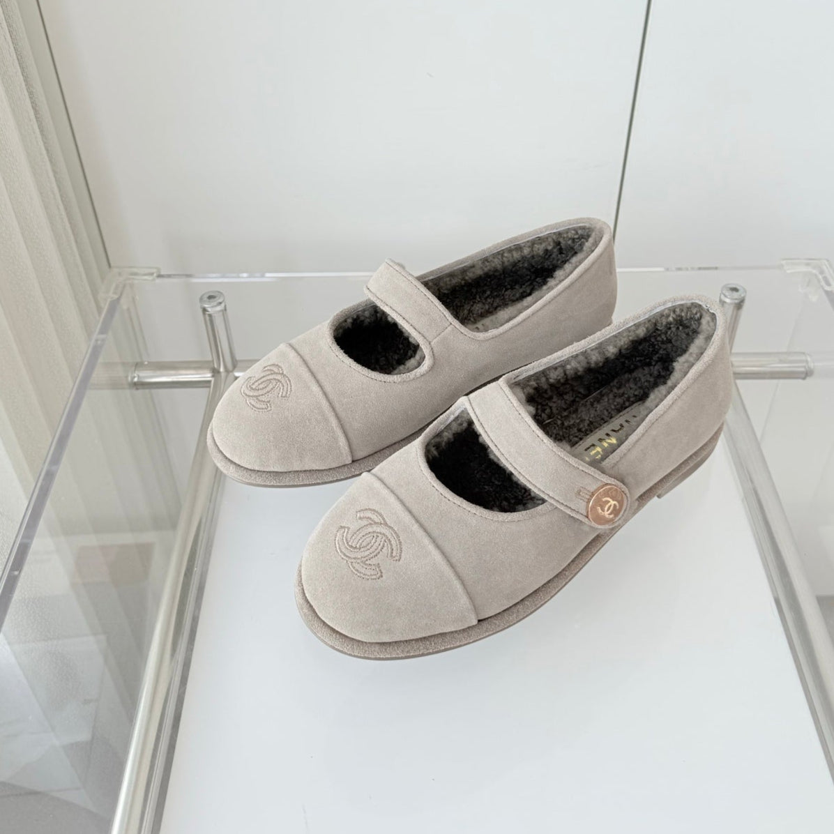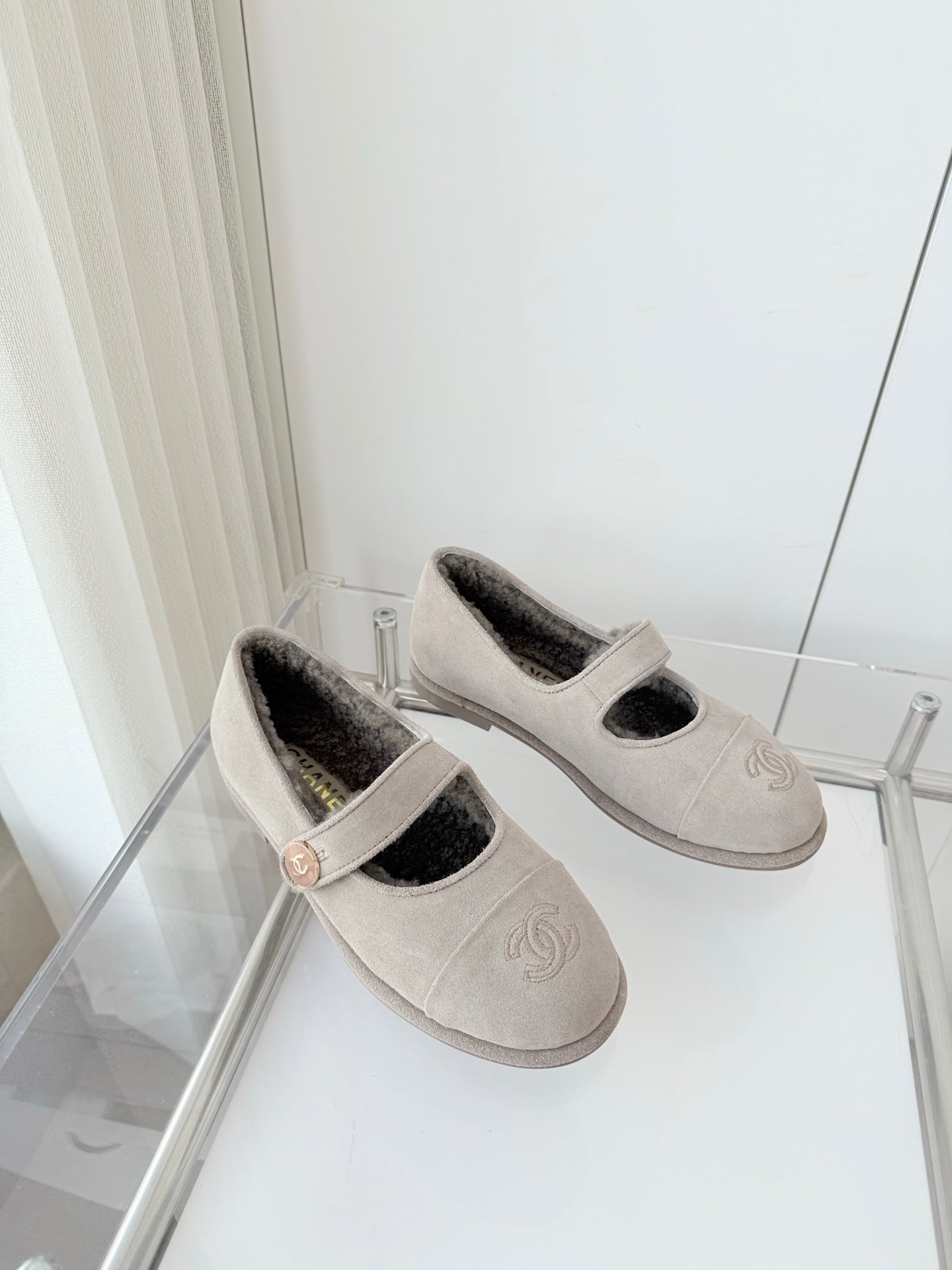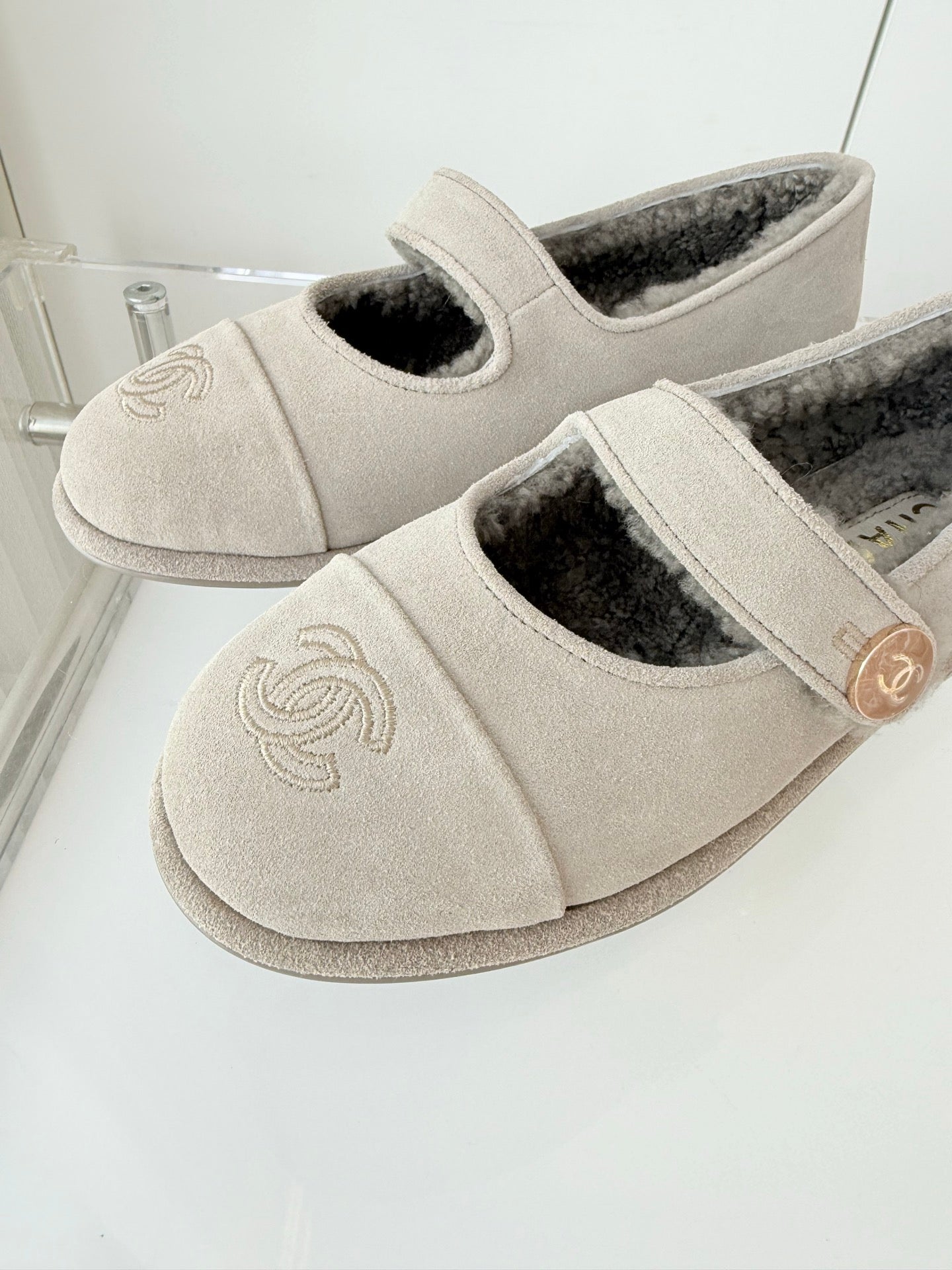 - Material: Suede, wool lining