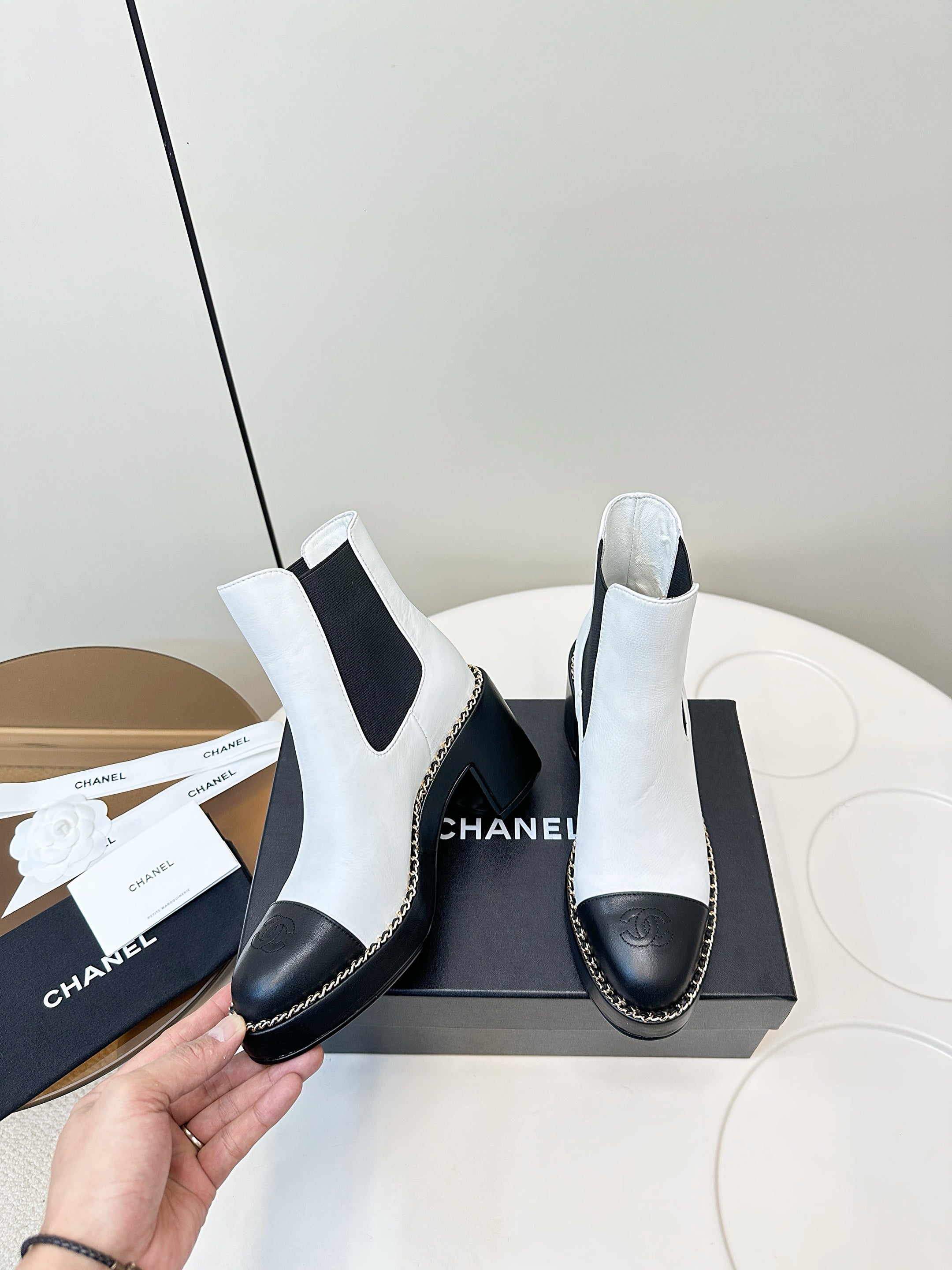 CC Chelsea Boot White Black Calfskin 409528