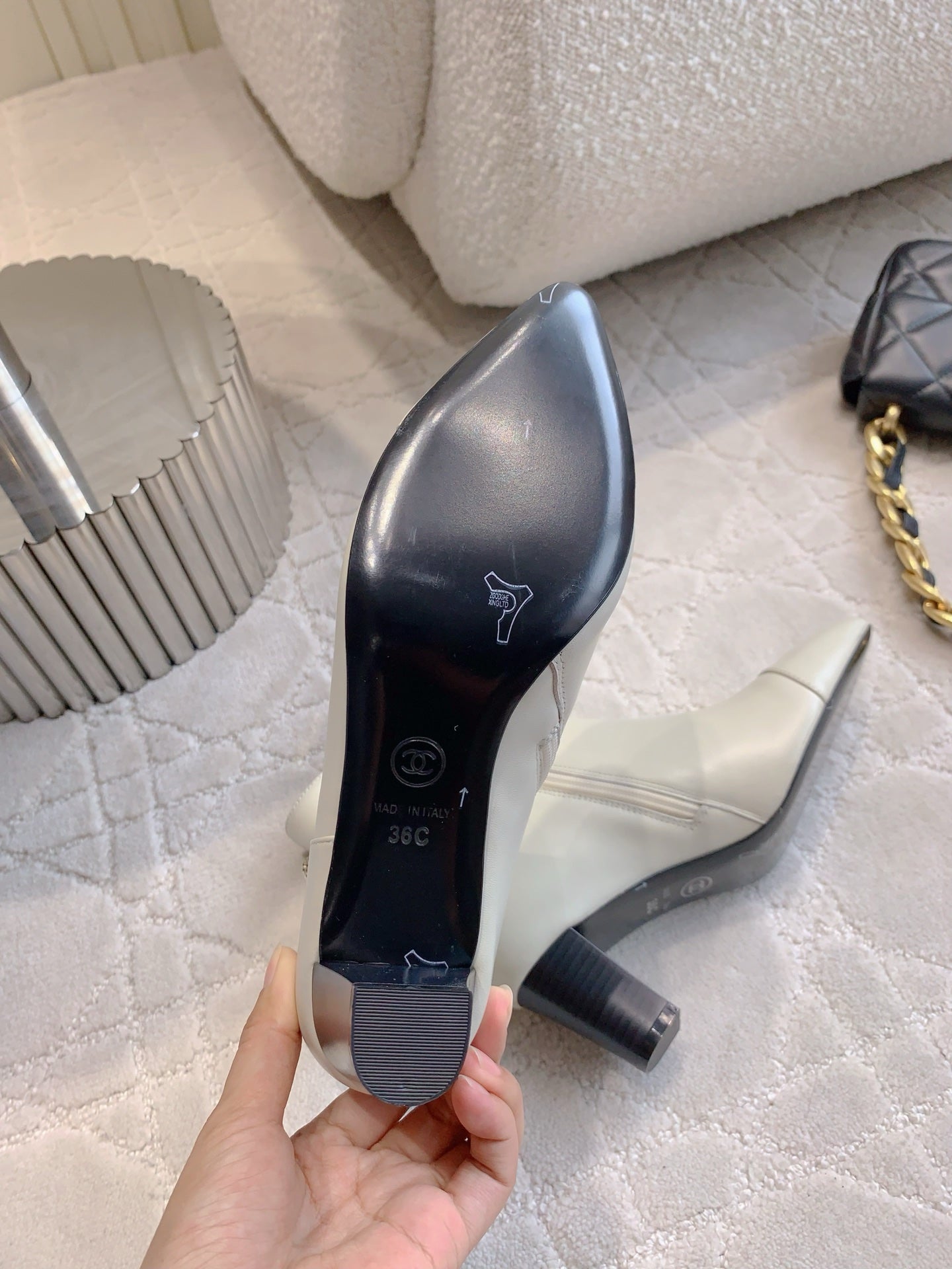 CC 25 Chunky High-heeled Ankle Boots White Calfskin 516658