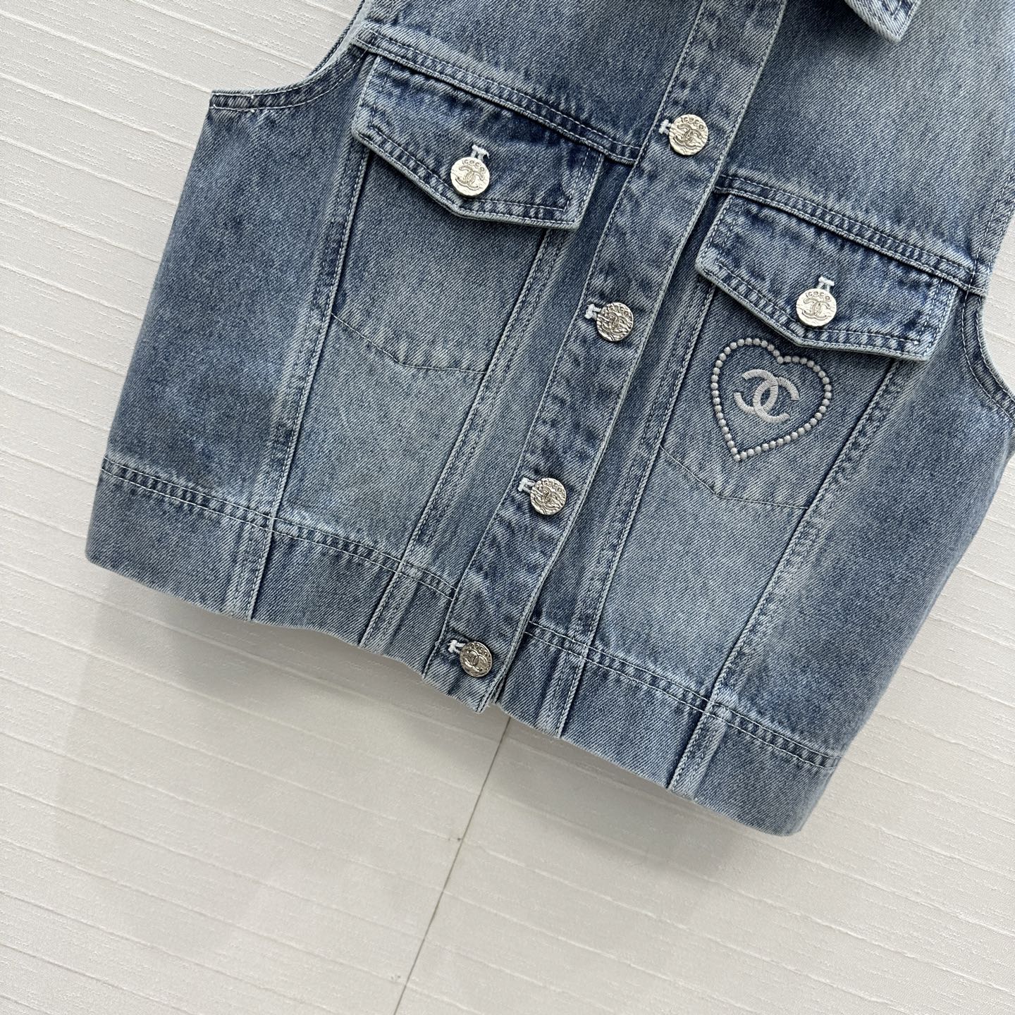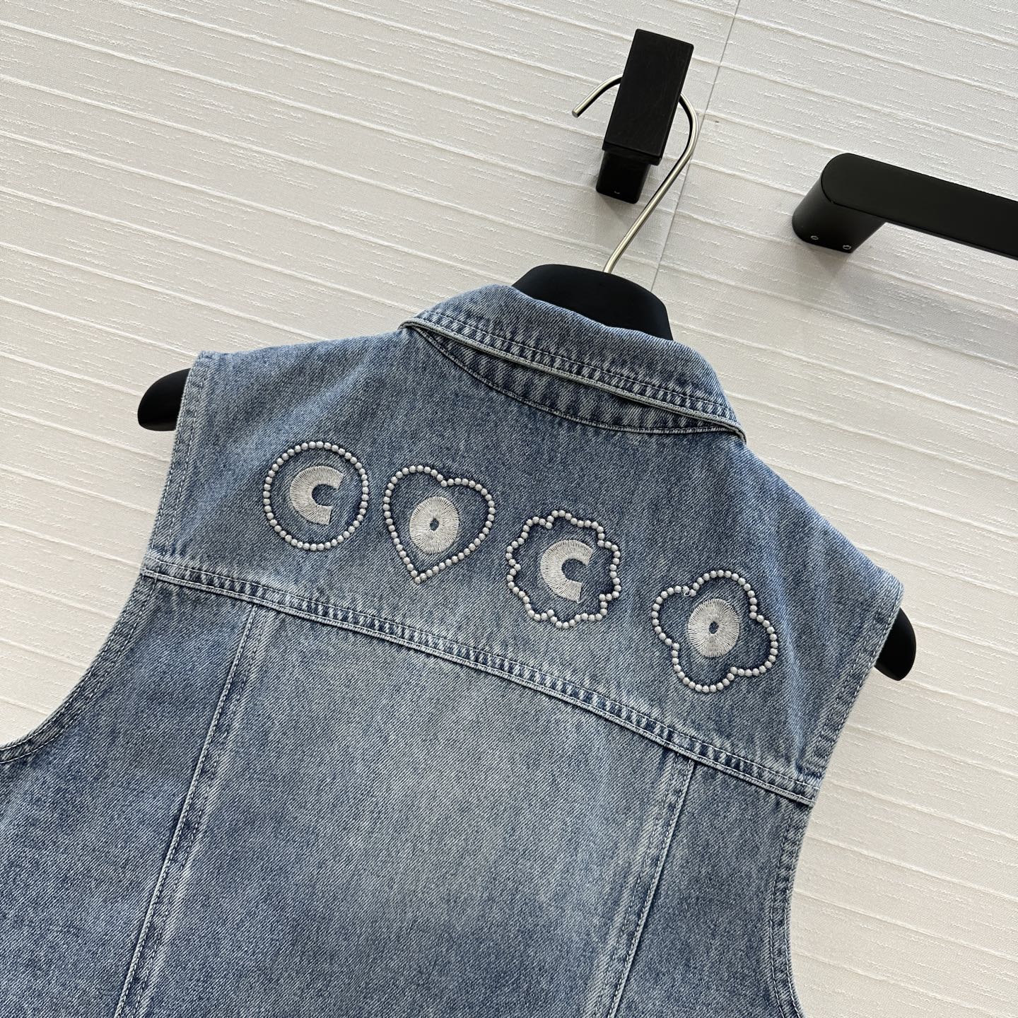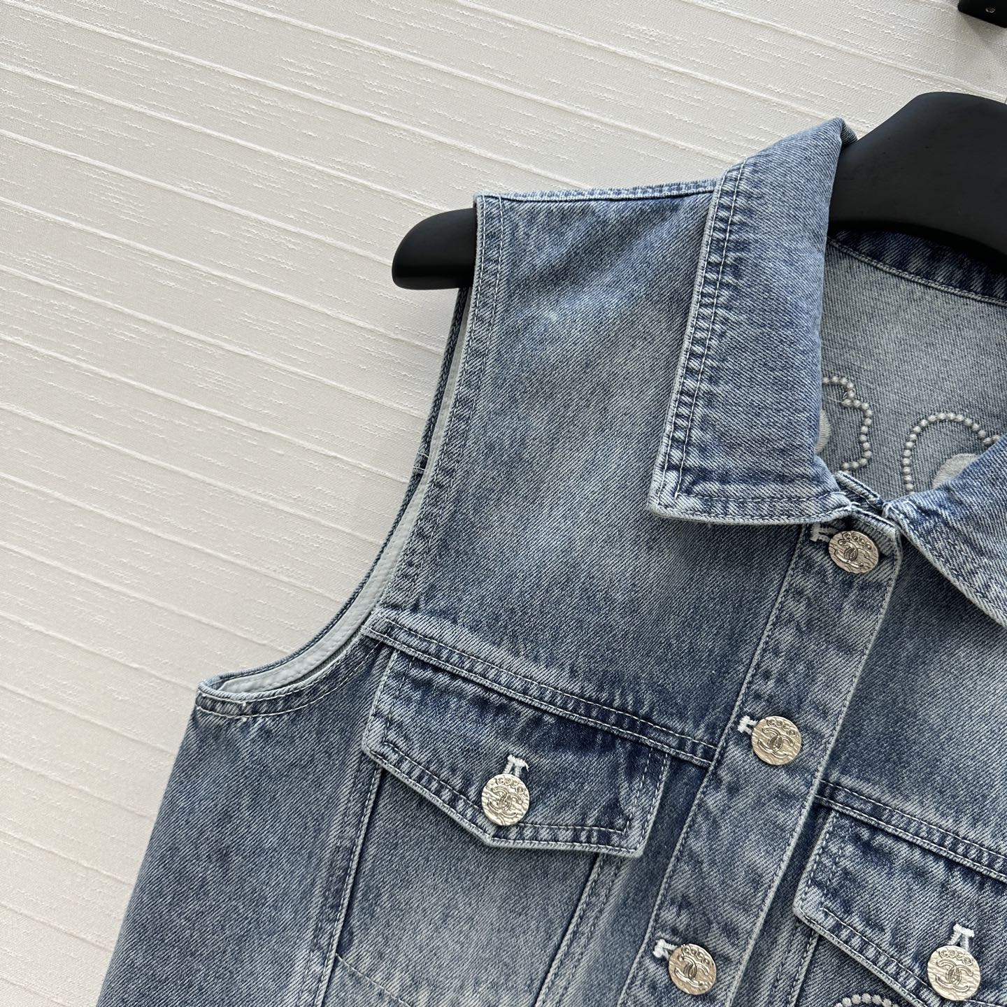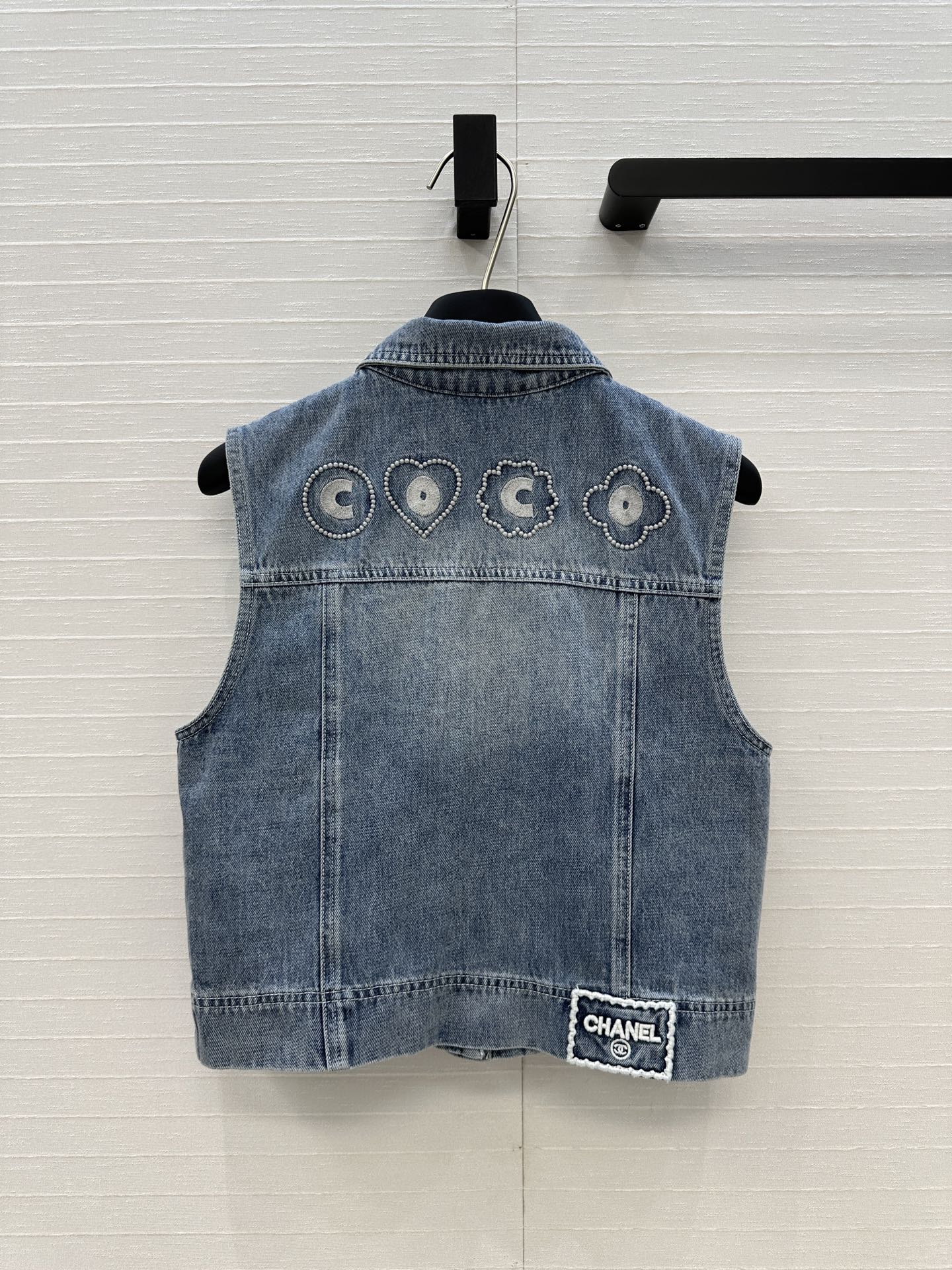 CC 25 Embroidered Vest Jacket Blue Denim Cotton