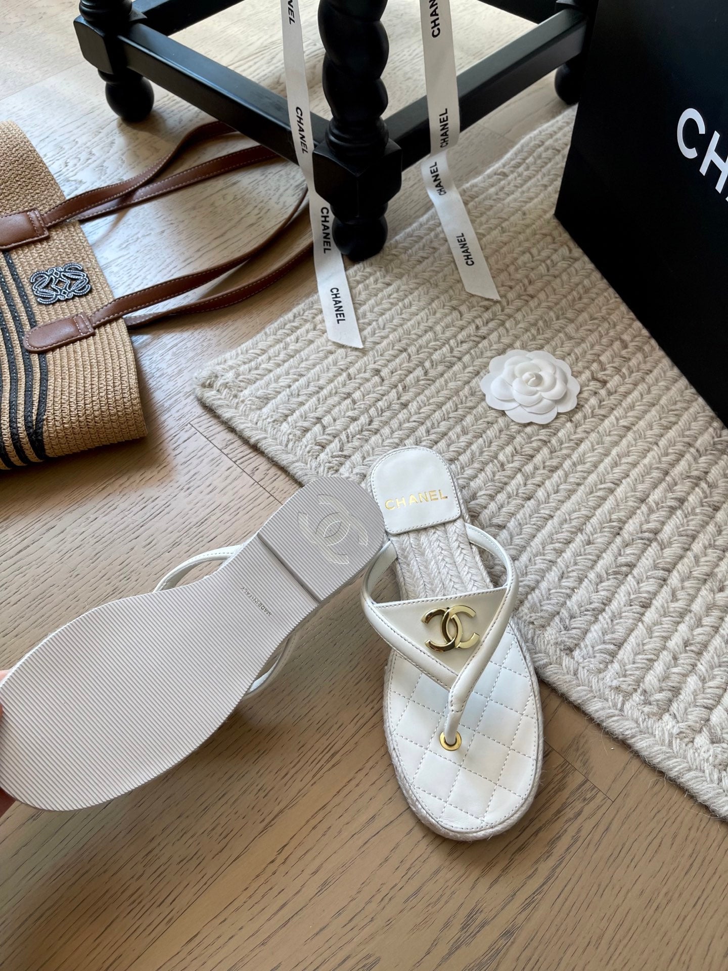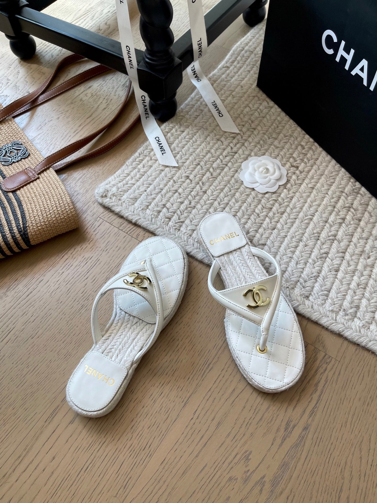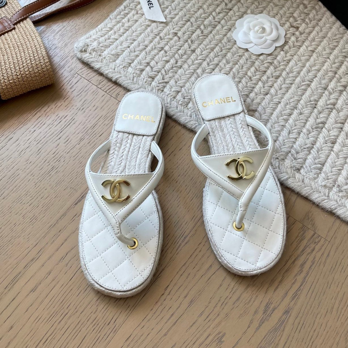 CC 25 Flip Flop Sandals White Calfskin Espadrilles