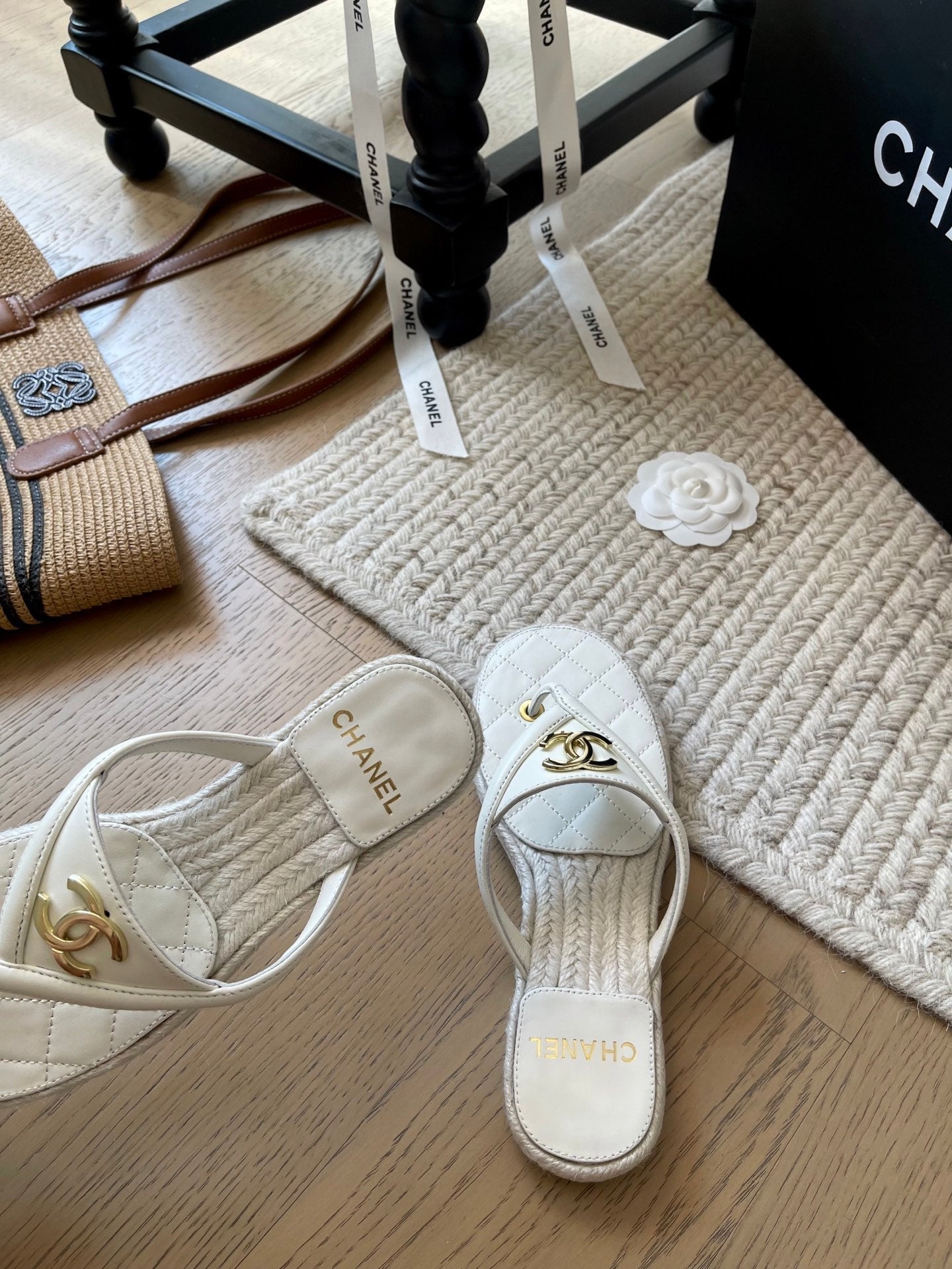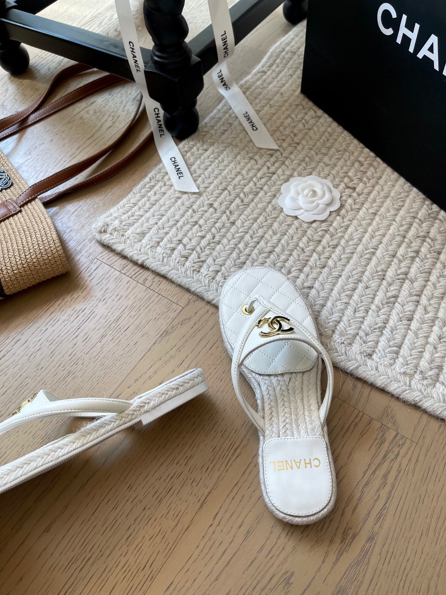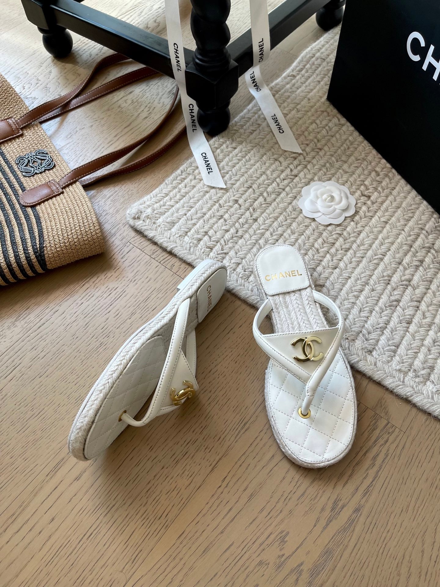 CC 25 Flip Flop Sandals White Calfskin Espadrilles