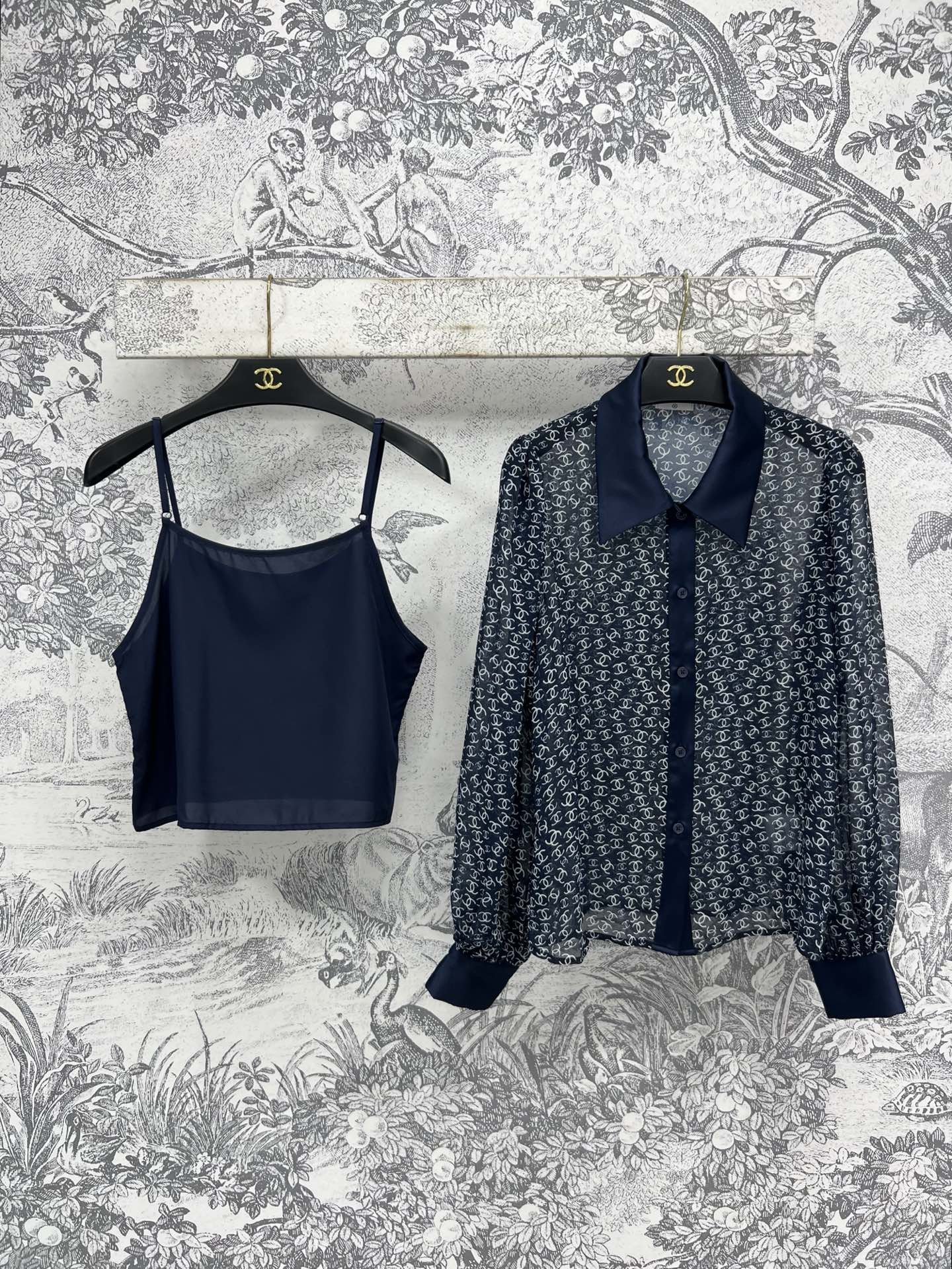CC 25 Full-printed Logo Two-piece Shirt Dark Blue Polyester Fiber