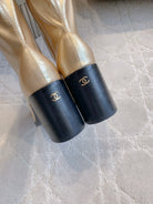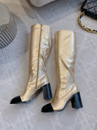 CC 25 Heeled Long Boot Light Gold mix Black Patent Leather 516681