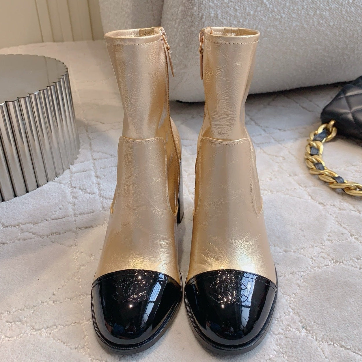 CC 25 Heeled Short Boot Light Gold mix Black Patent Leather 516677