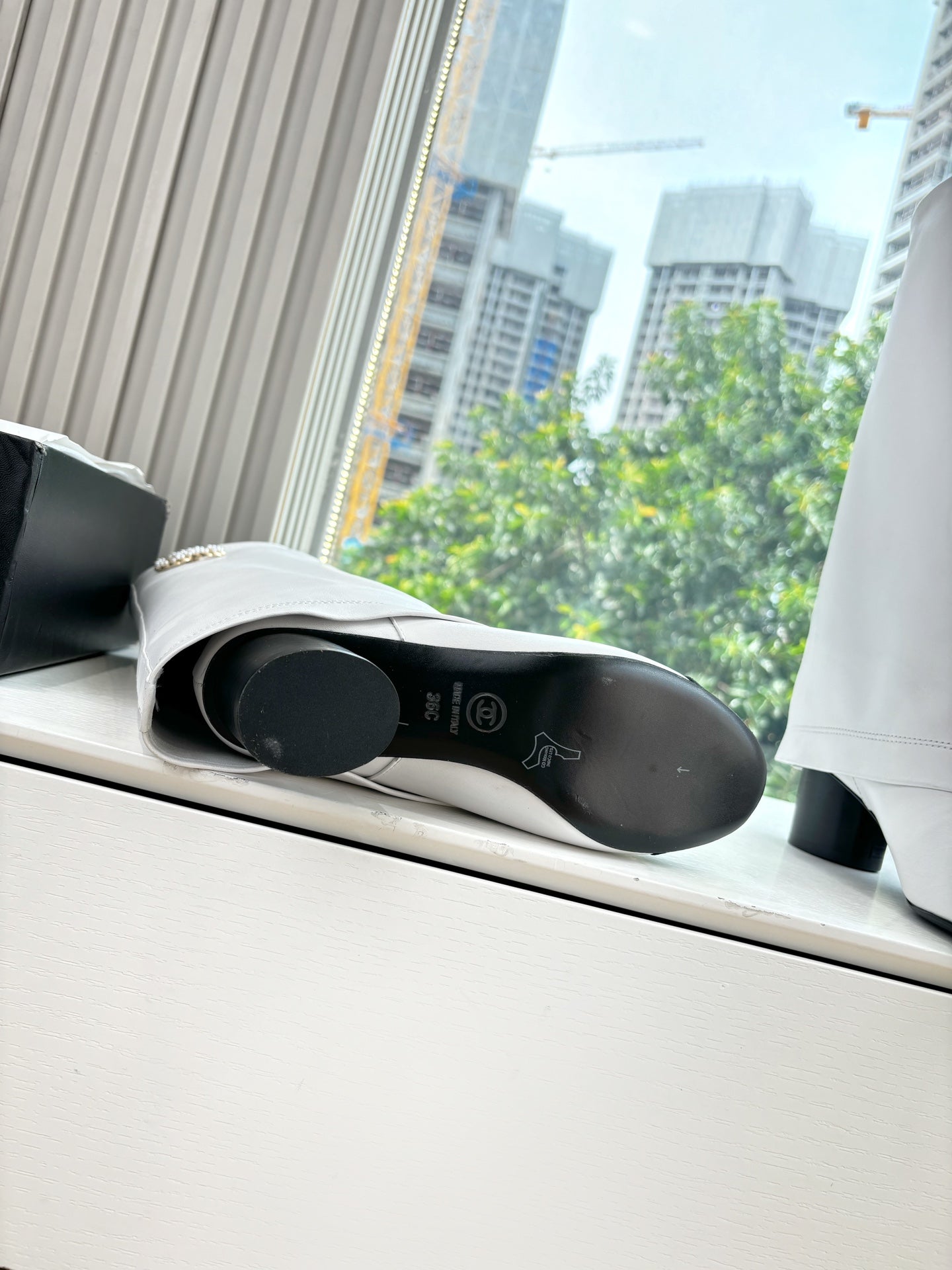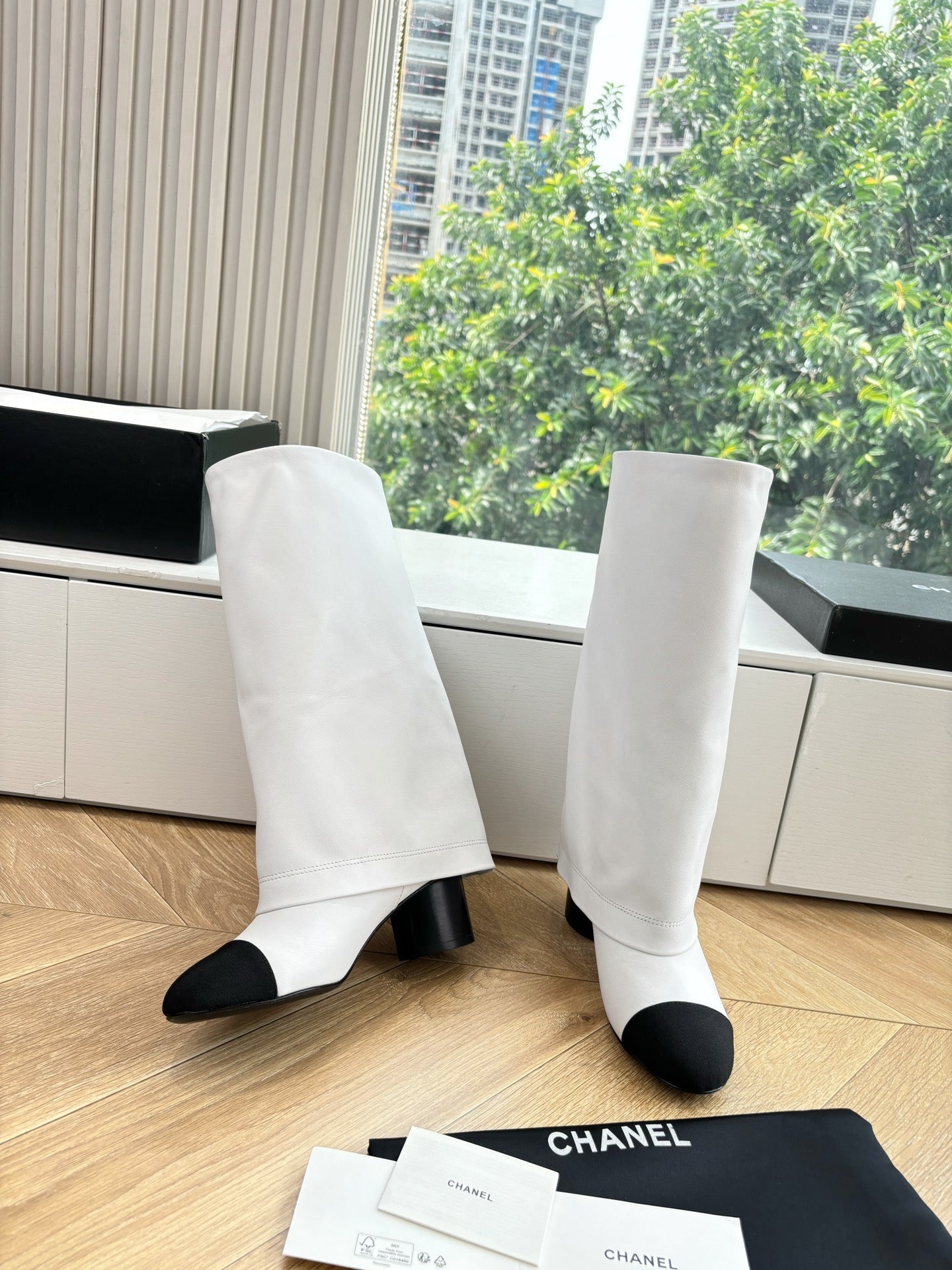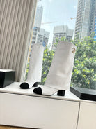 CC 25 High Boot White Calfskin Black Grosgrain 430336