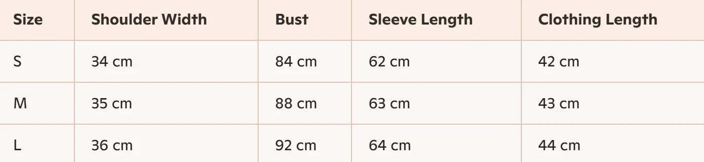 - Size : S, M, L