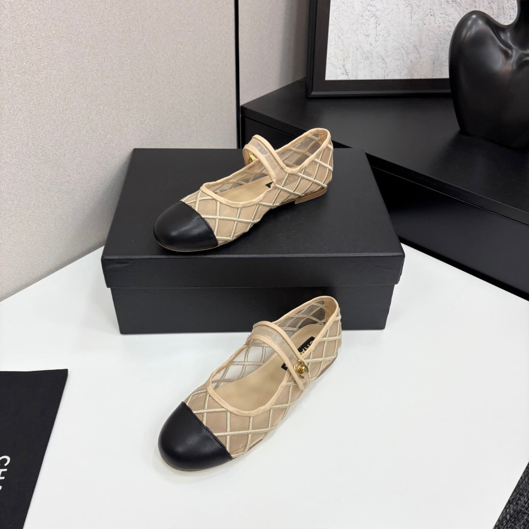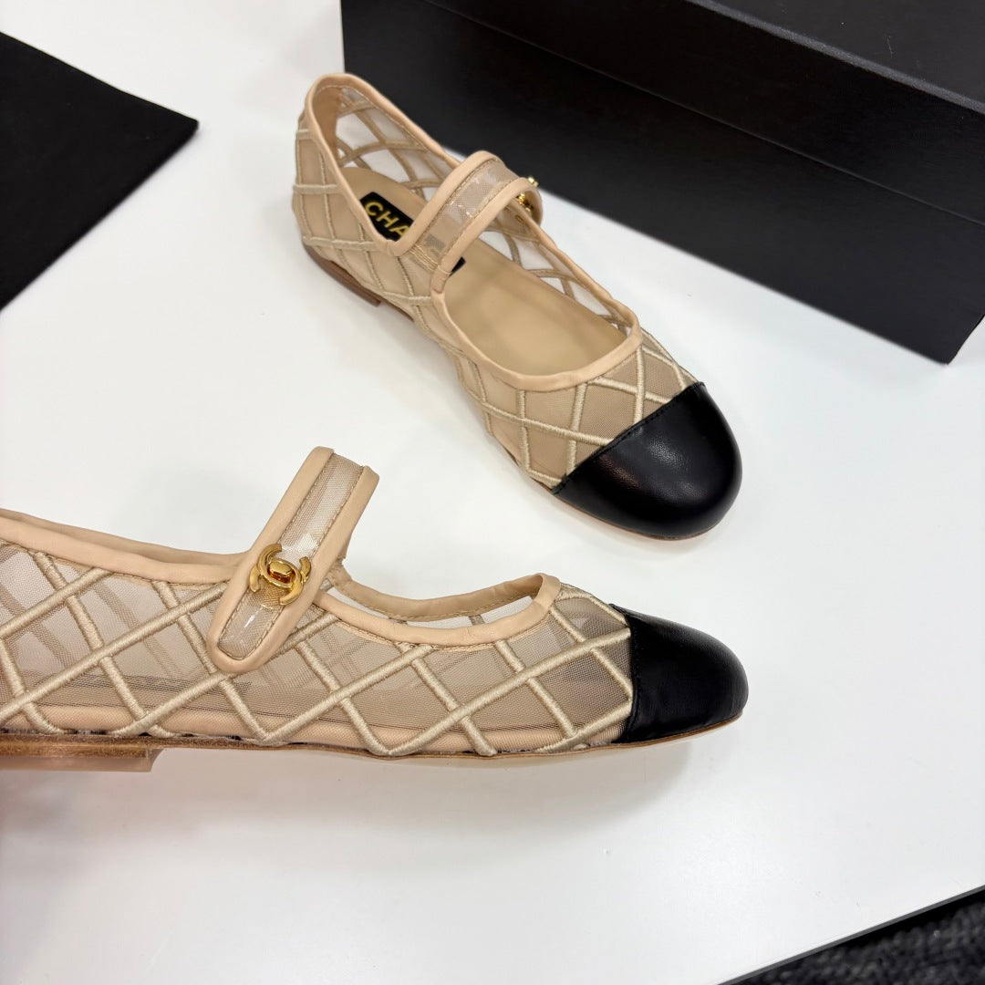 CC 25 Mary Jane Beige Mesh Black Calfskin