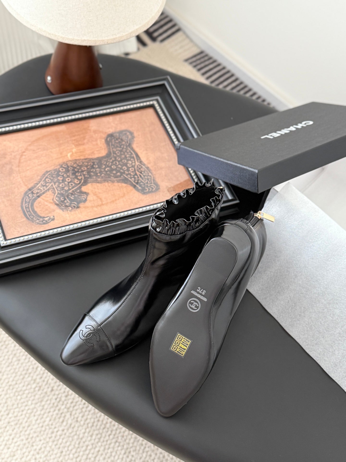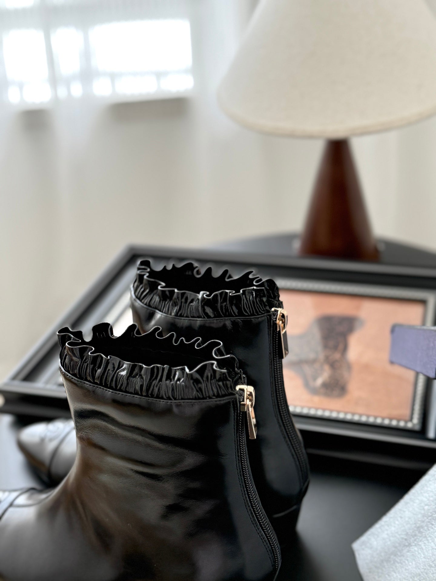 - Material: patent sheepskin