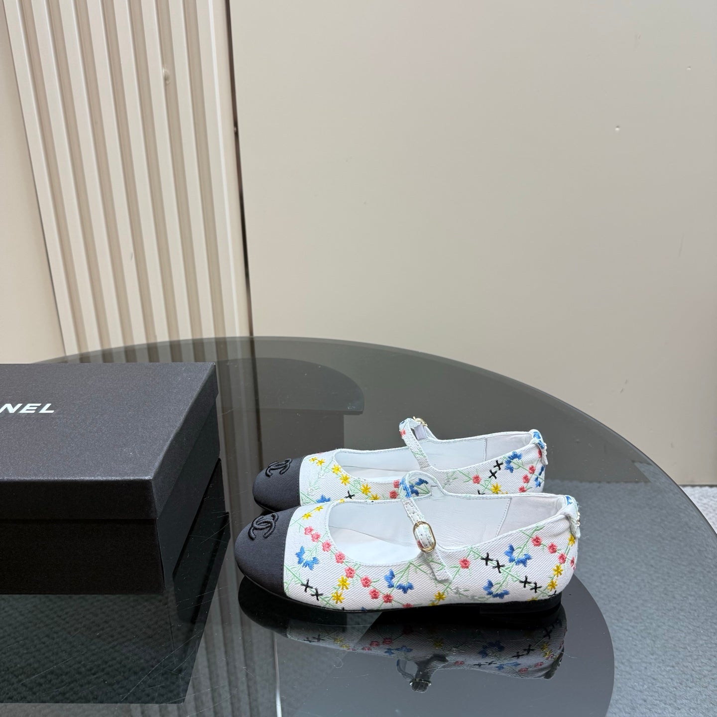 CC 25 Mary Jane Flats White Pattern Fabric 239405
