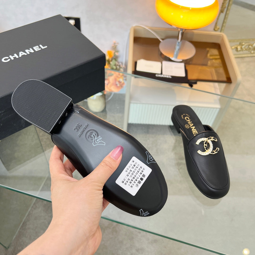 CC 25 Mule Black Calfskin Large Double C Logo