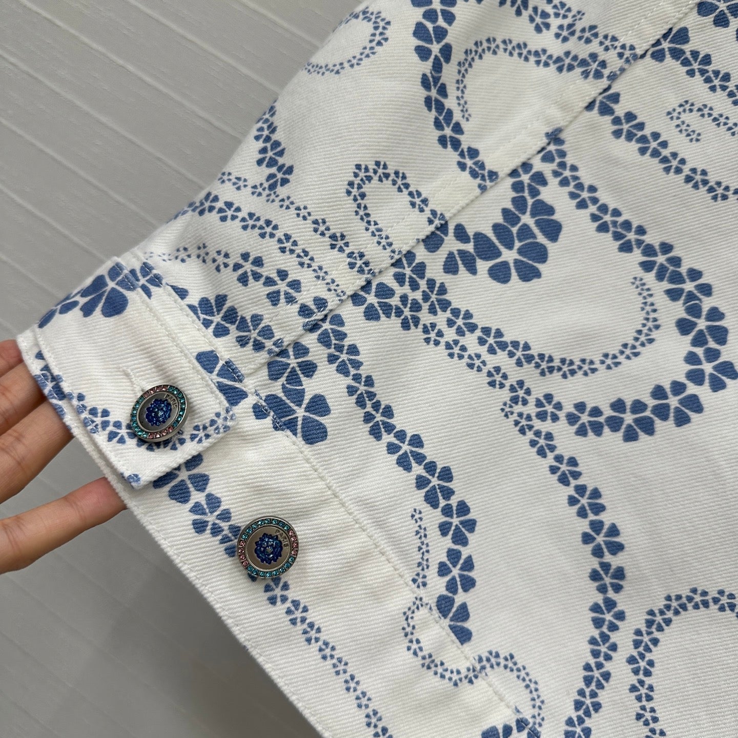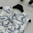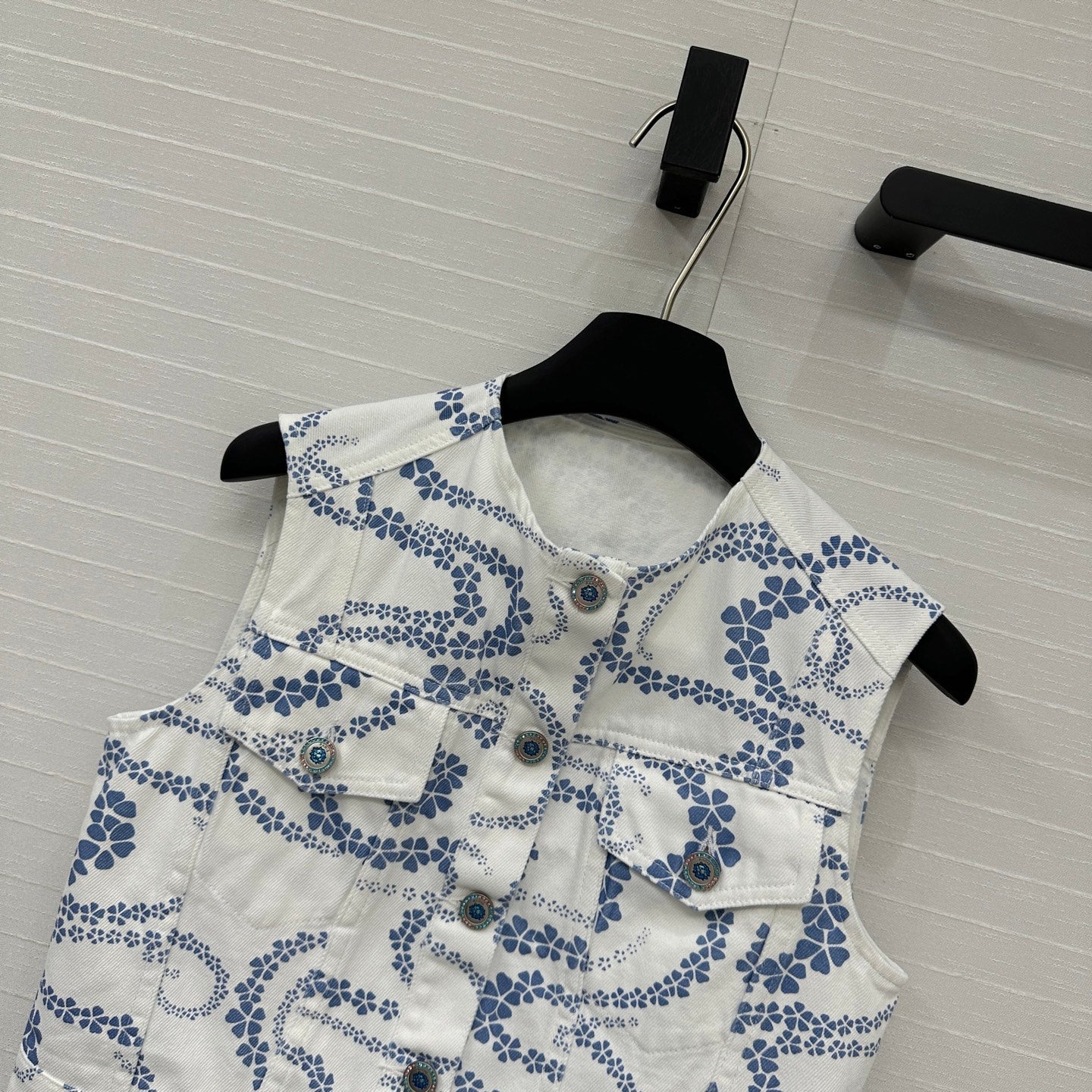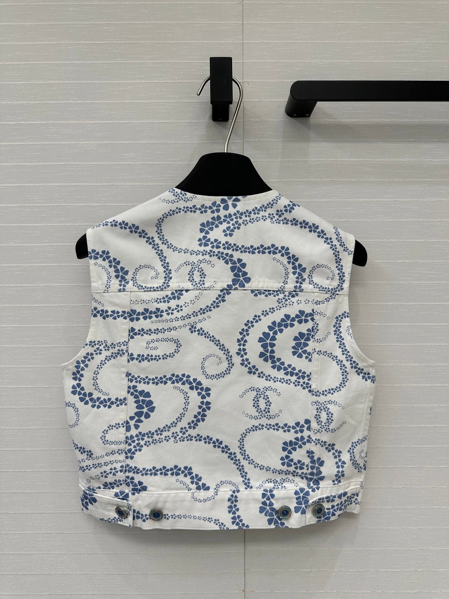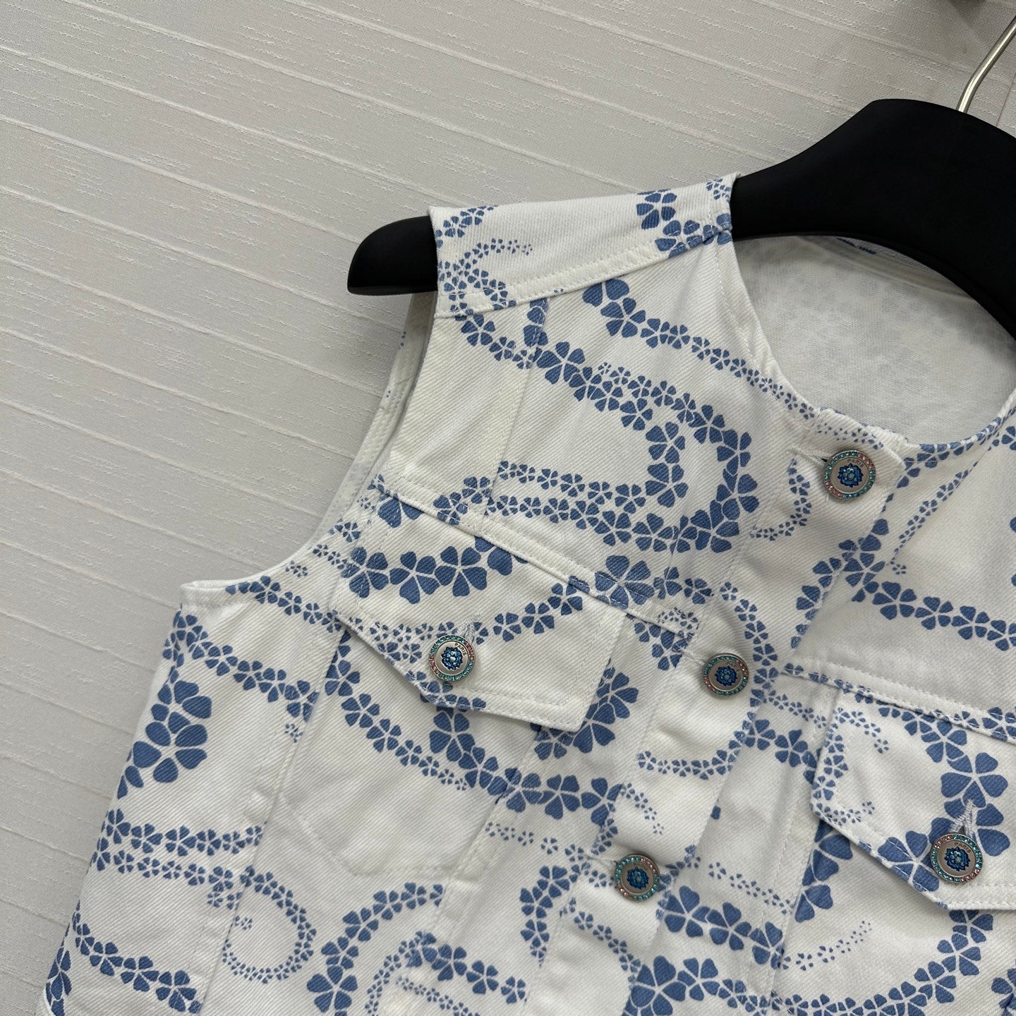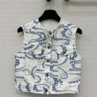 CC 25 Printed Denim Round Neck Vest Blue White Cotton