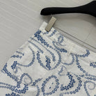 CC 25 Printed Denim Single-breasted Short Skirt Blue White Cotton