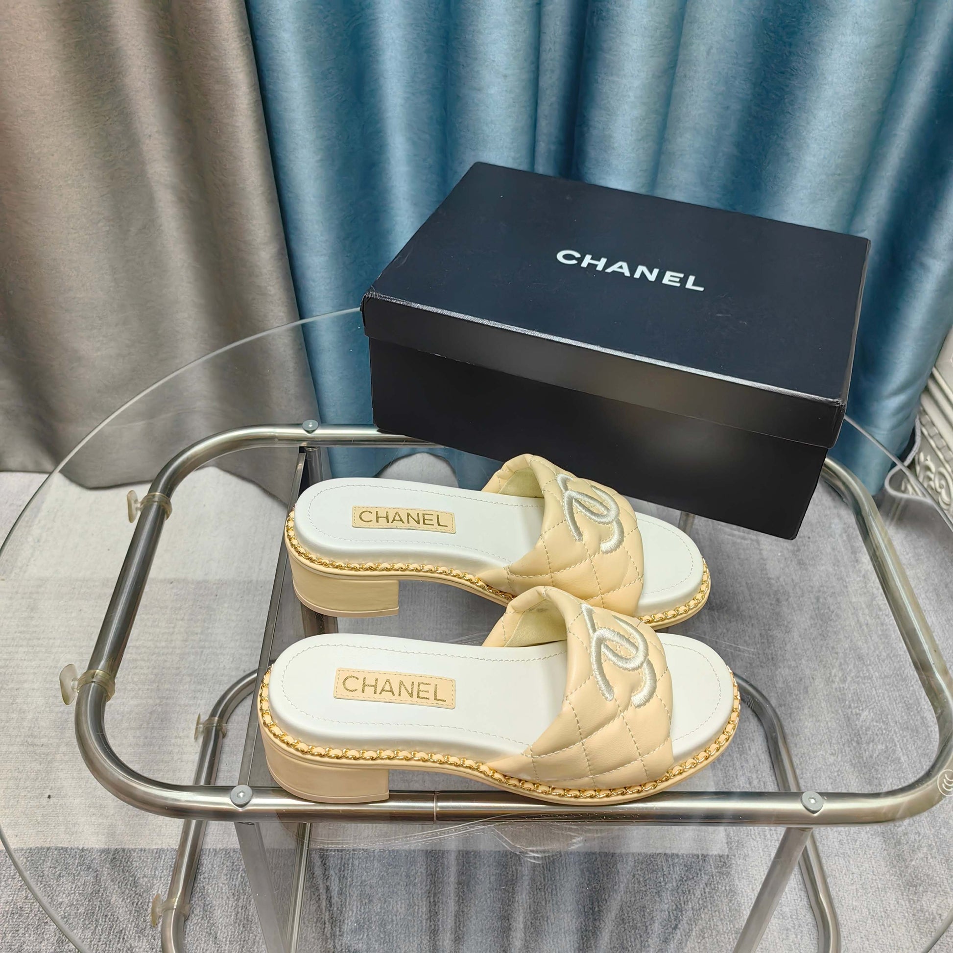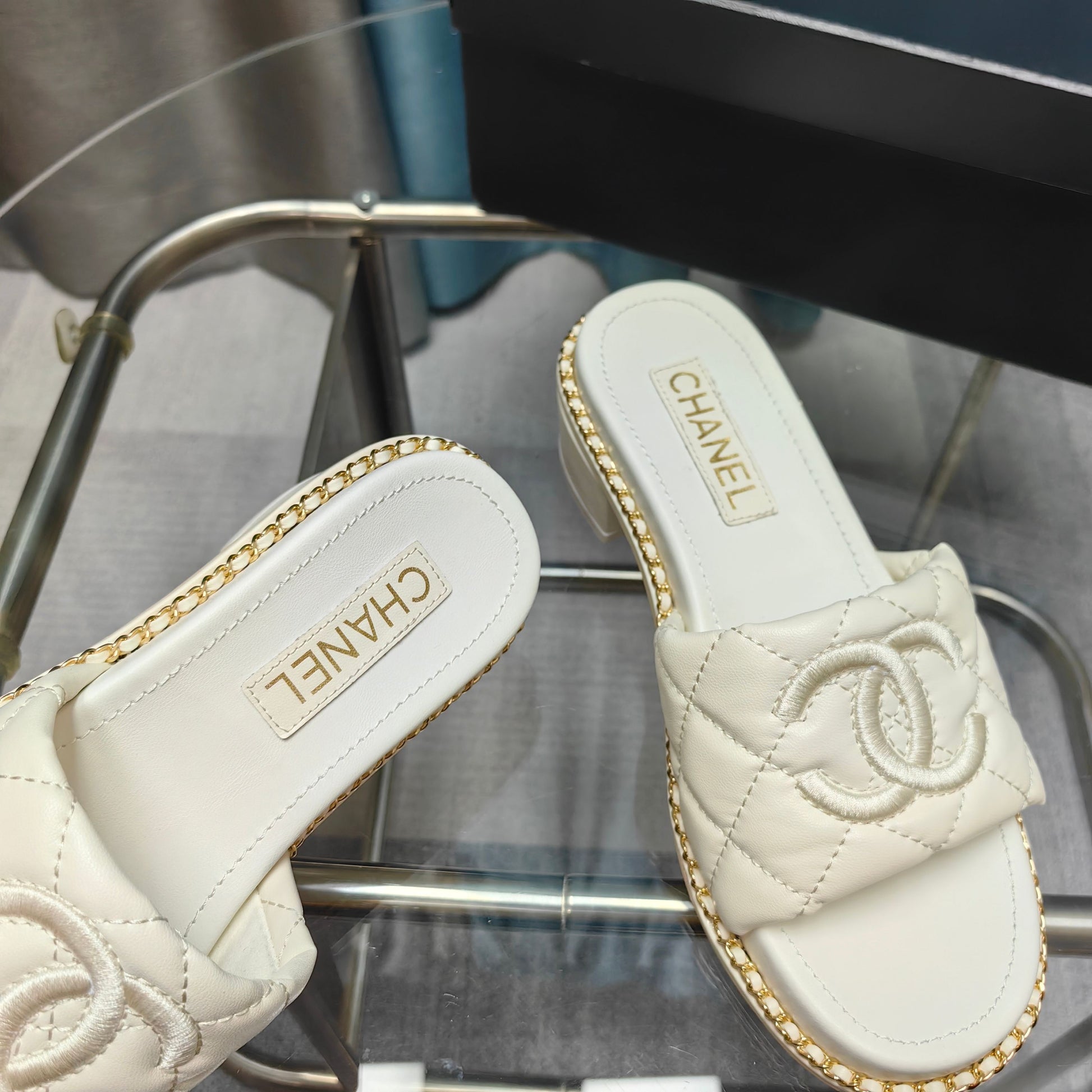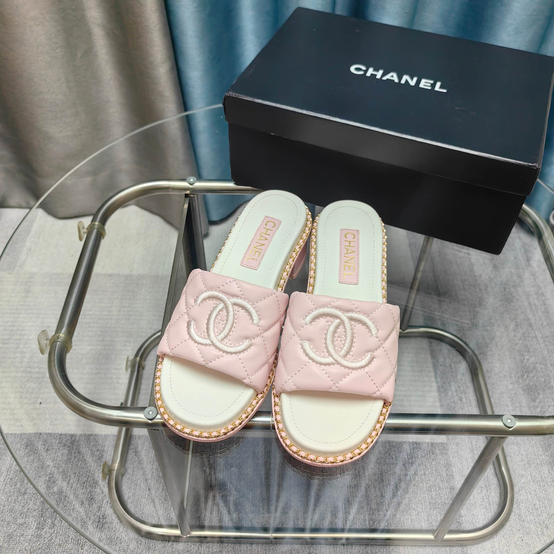 CC 25 Sandal 5cm Quilted Calfskin Leather Chain