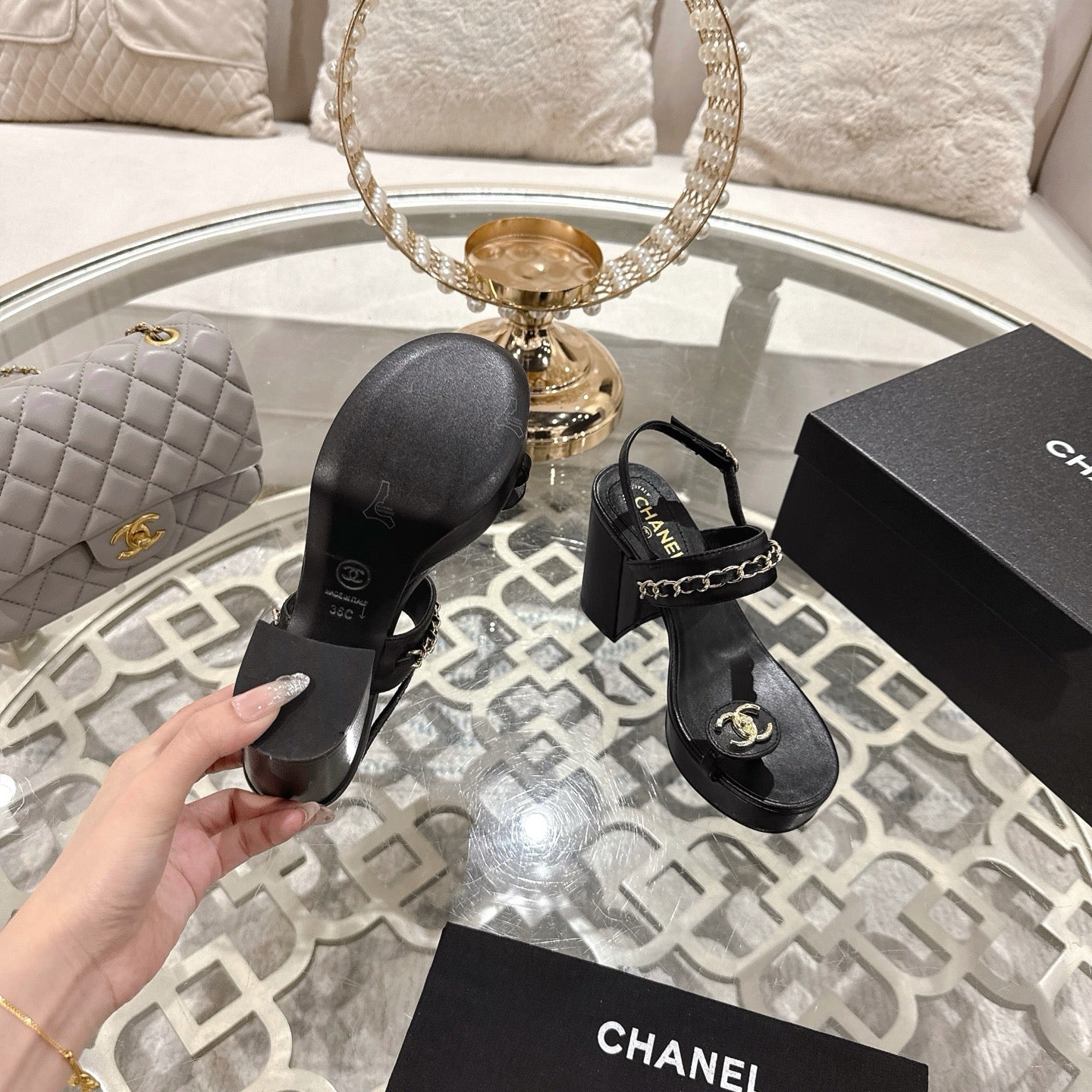 CC 25 Sandal Platform Heels Black Lambskin 268975