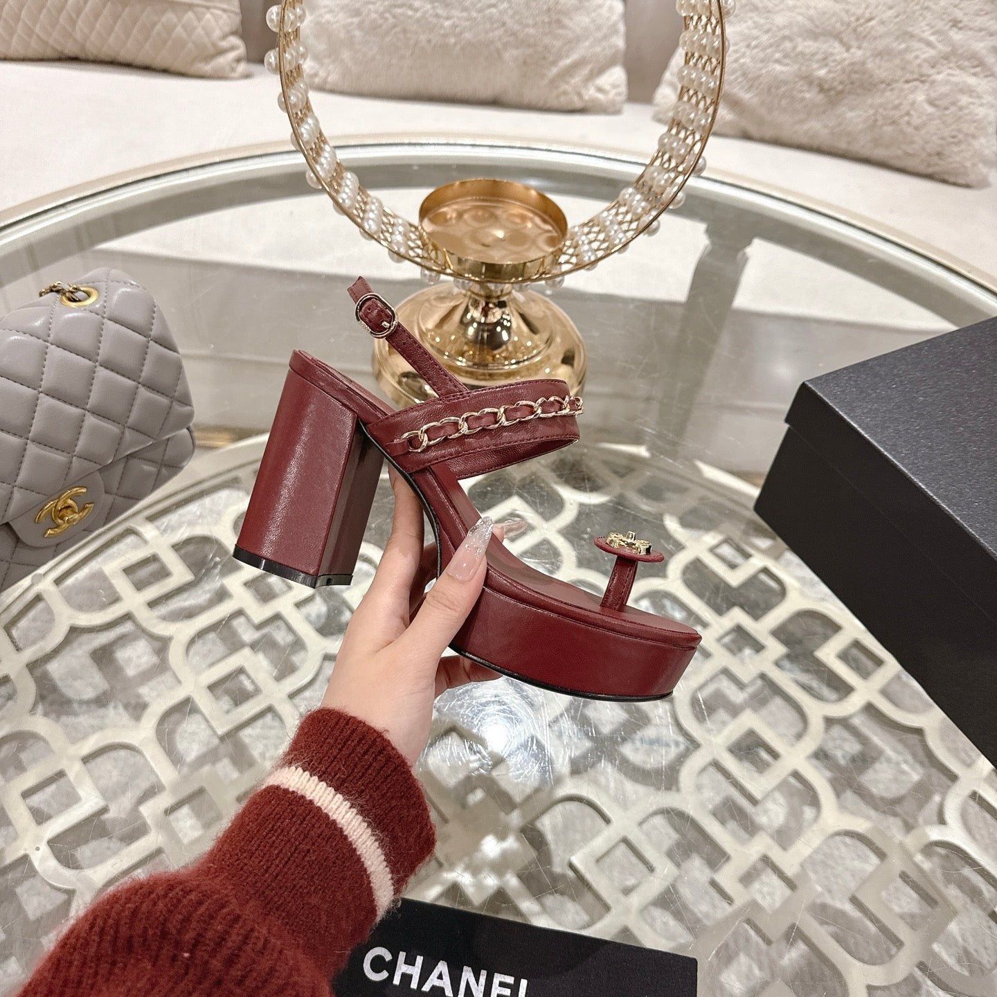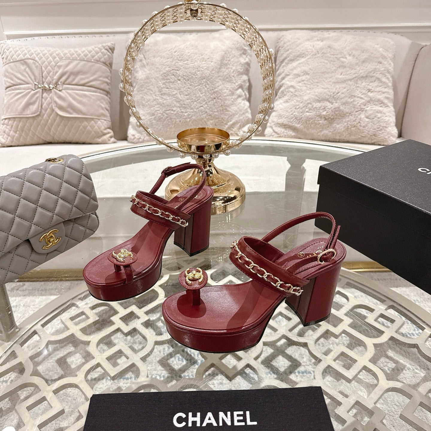 CC 25 Sandal Platform Heels Red Lambskin 268972