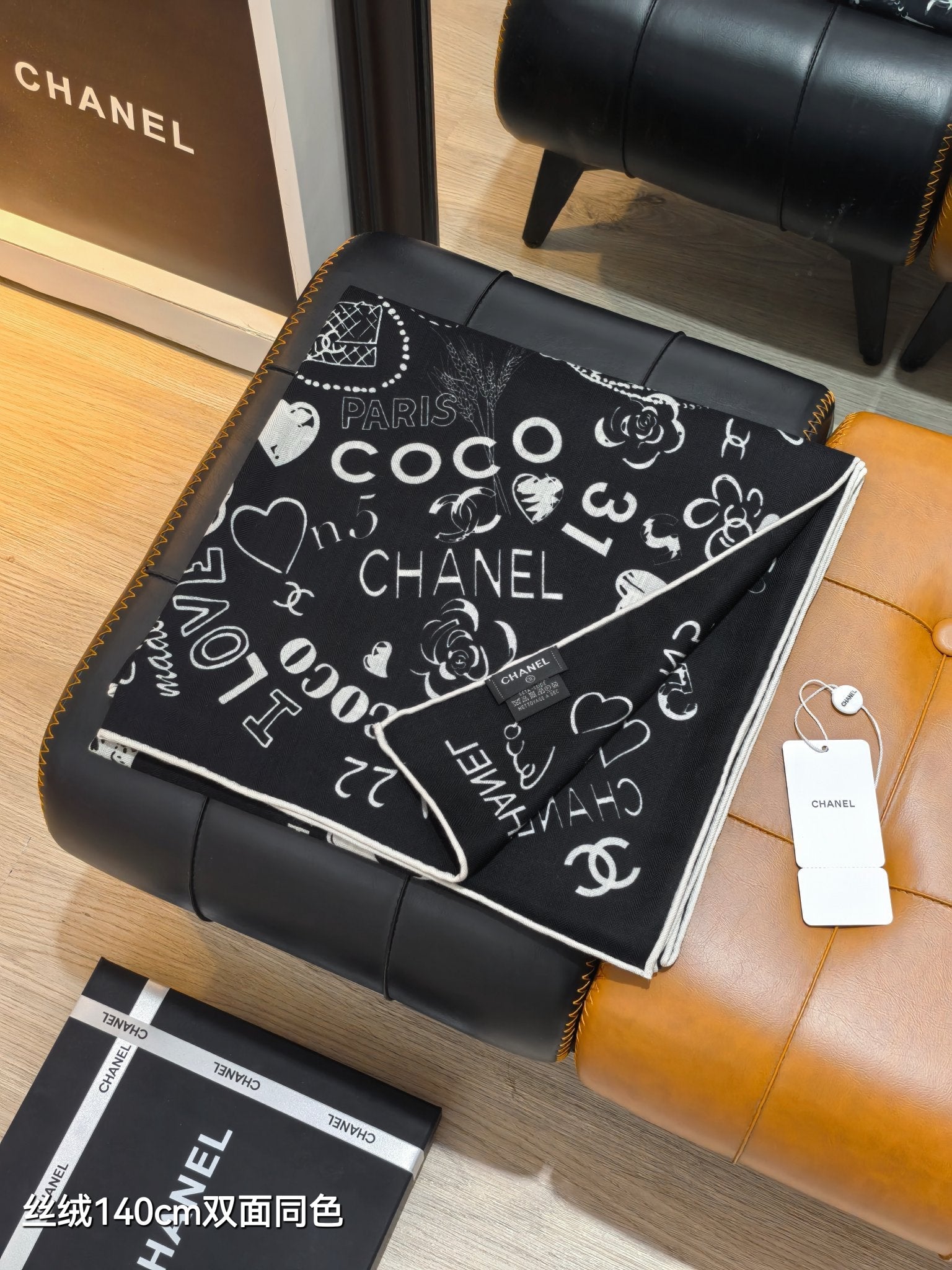CC 25 Scarf 140CM Black White Cashmere 293081