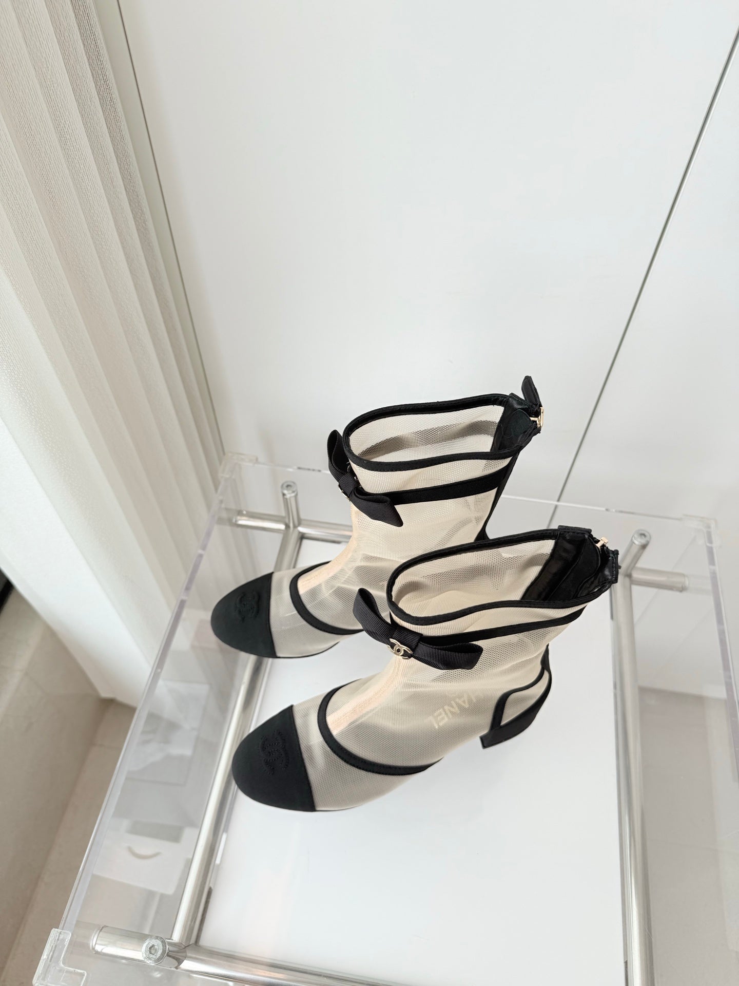 CC 25 Short Boot Beige Black Mesh Fabric 411469